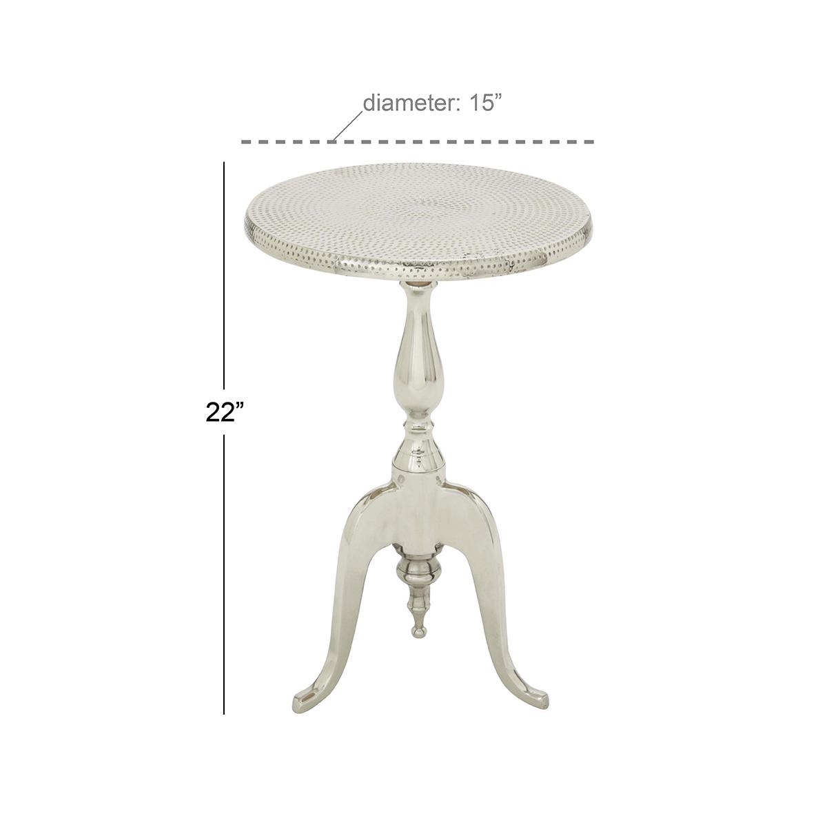 Description Dress up your living room or bedroom with this 9th & Pike® elegant polished silver accent able, featuring a hammered metal finish and a serpentine tripod base. This...