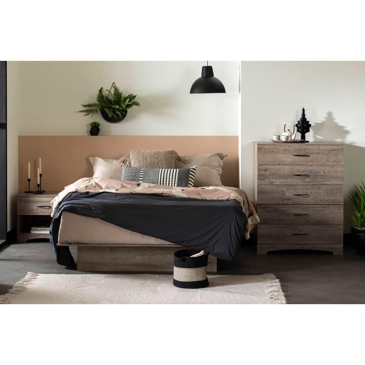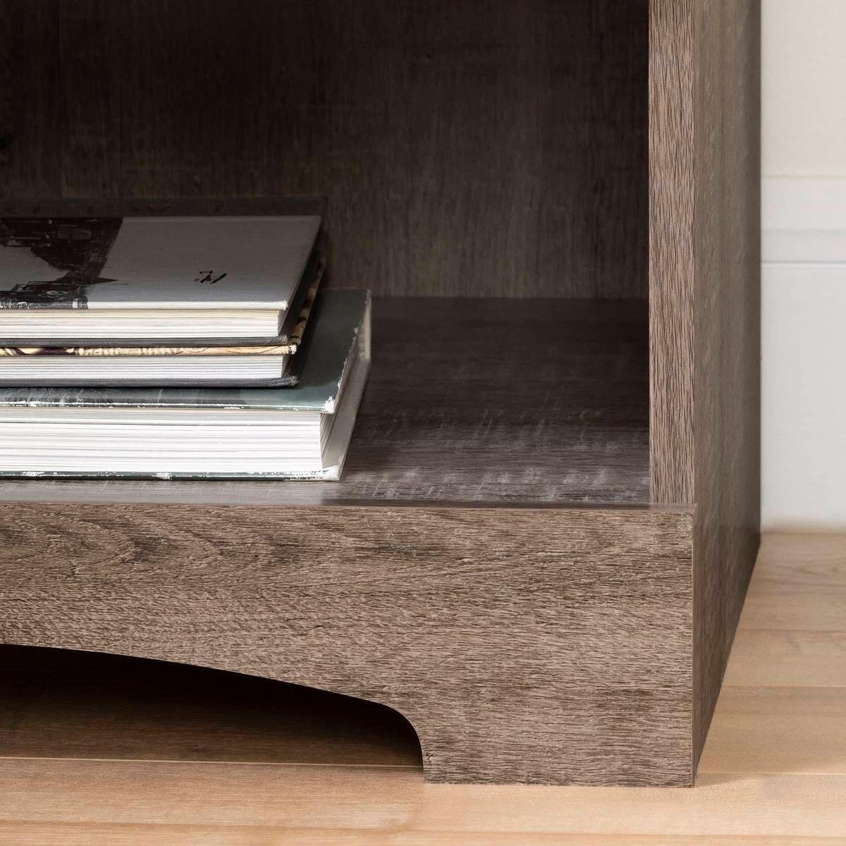 Description This South Shore Step One Weathered Oak nightstand with a cutout kickplate will give your bedroom a contemporary and distinguished look. In order to maximize bedside...