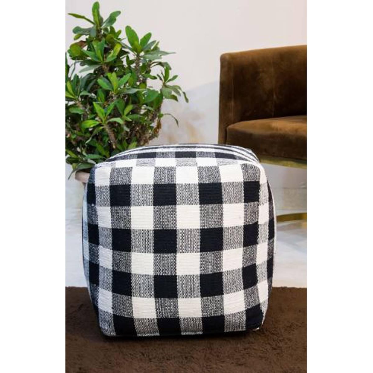 This checkered nocturn pouf ottoman can go with any type of decor. It has a unique farmhouse look with a checkered print that will liven up any room.