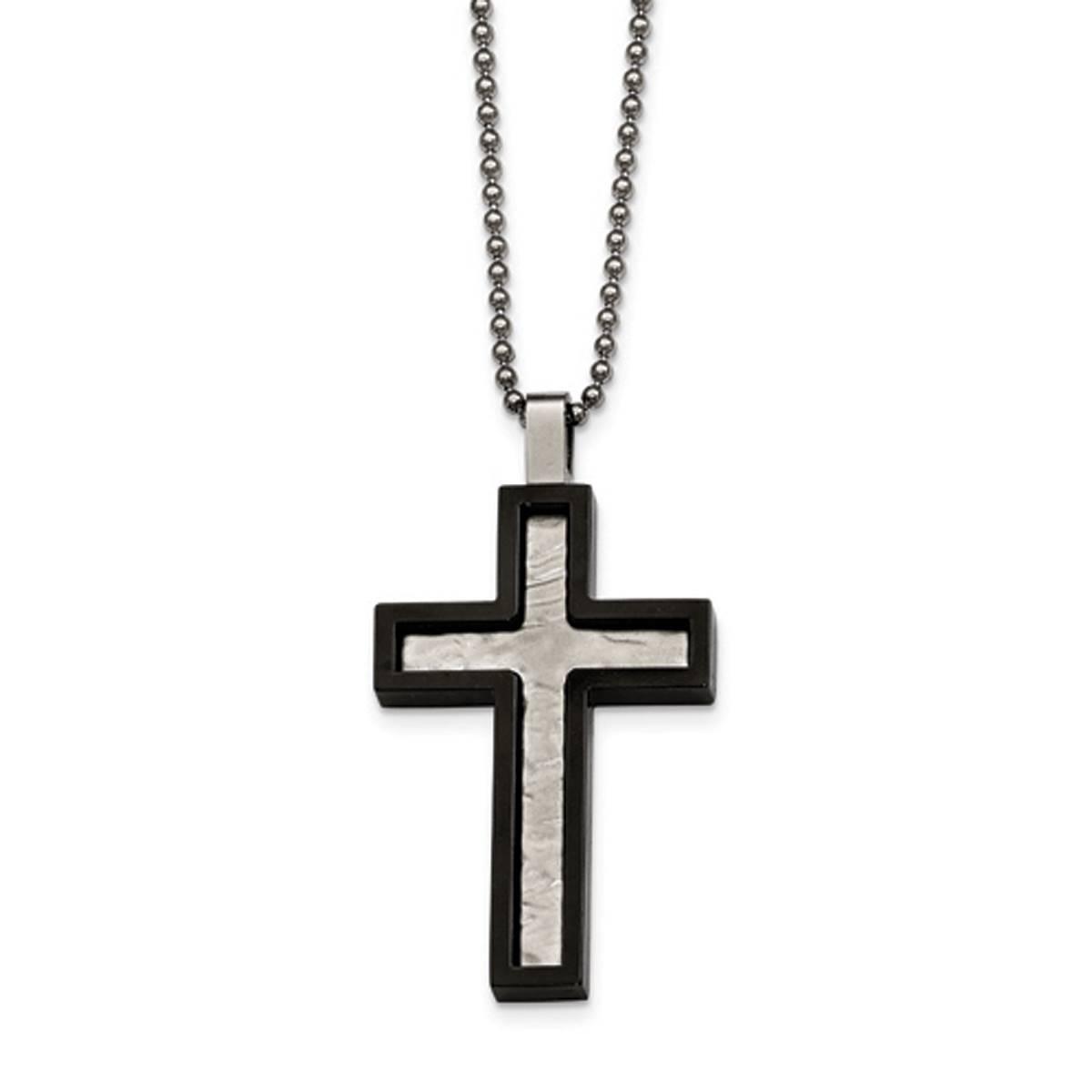 Mens Gentlemen’s Classics™ Hammered Black IP Cross Necklace