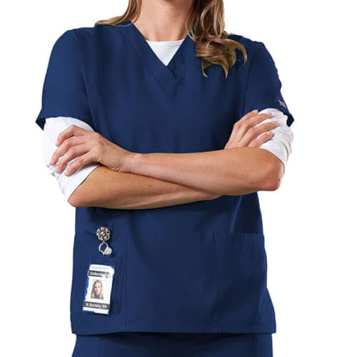 Womens Cherokee Work Wear V-Neck Top - Navy