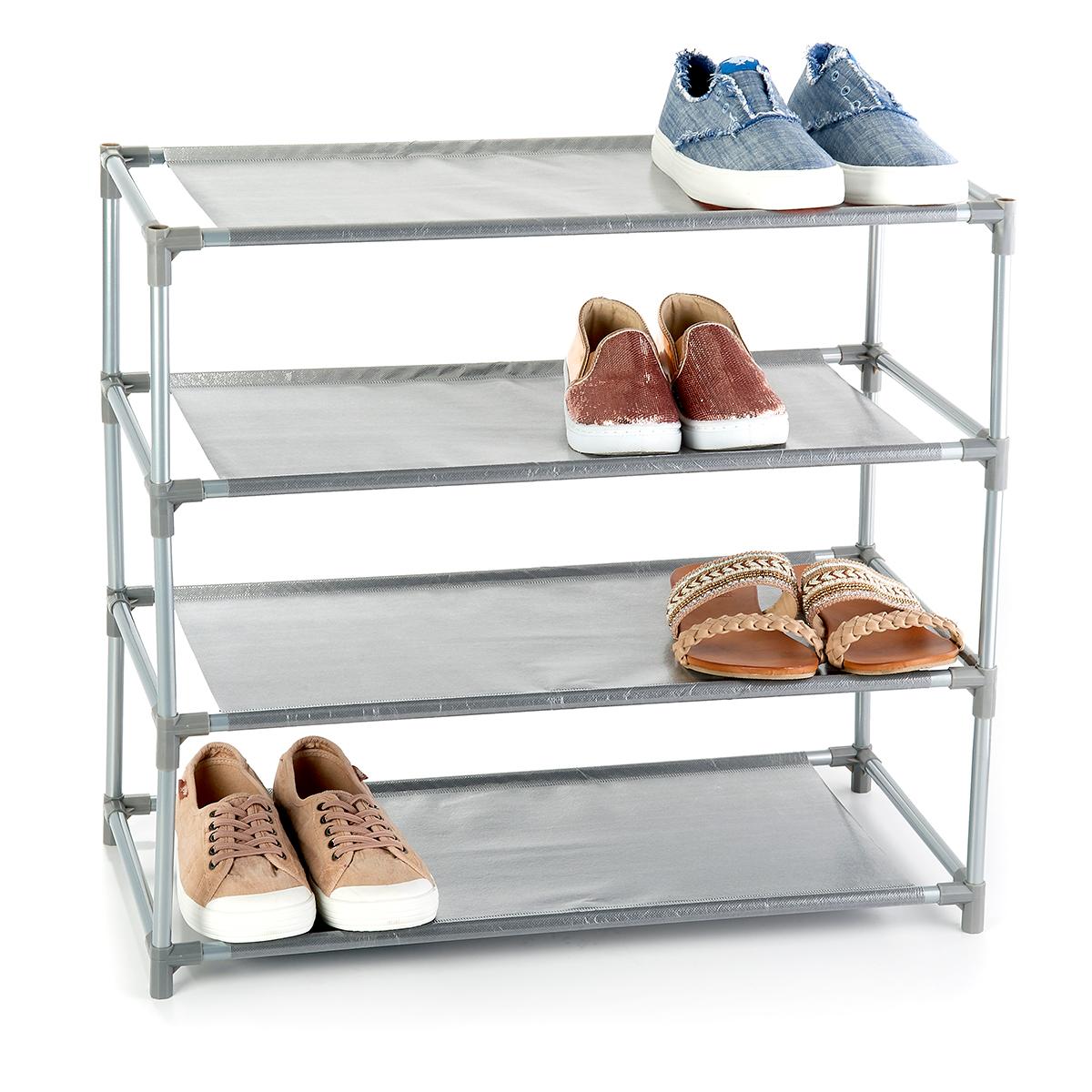 Keep your footwear organized with this Home Basics 12-Pair Non-Woven Shoe Rack. This easy-to-assemble rack can be stacked to maximize storage and features fabric shelves to keep heels and sandals from slipping through.