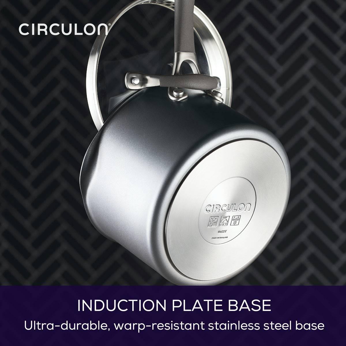 Description From the inventors of hard-anodized nonstick cookware comes the Circulon A1 Series 3-quart induction straining saucepan with ScratchDefense™ technology. With...
