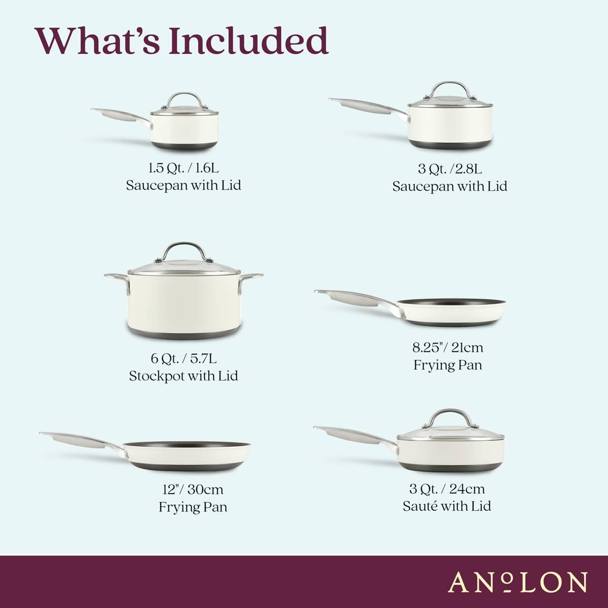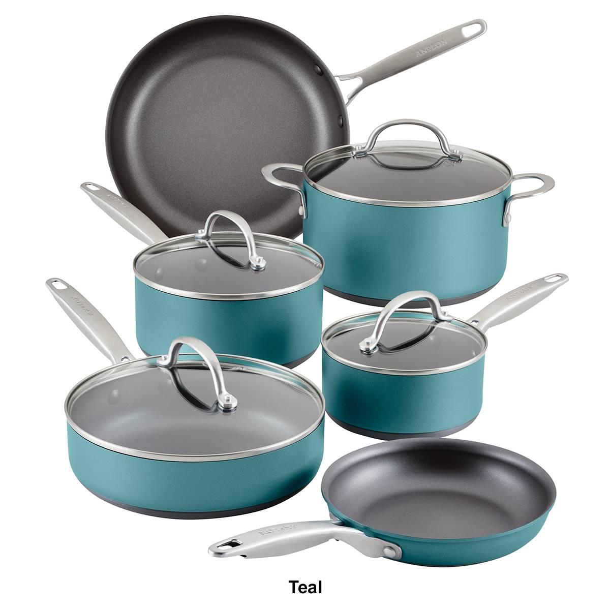 Description This Anolon® Achieve 10-piece hard anodized nonstick cookware set is built to help you prepare your favorite dishes perfectly. An ultra-durable, triple-layer...