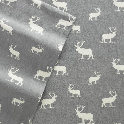 The Eddie Bauer Elk Grove 3 piece 160 thread count flannel sheet set will make the perfect addition to your bedroom. It features stately elk silhouettes in white on a chrome grey background.