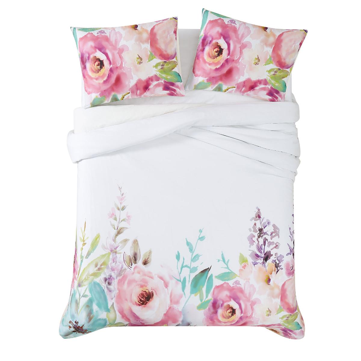 Dress up your bedroom with the Christian Siriano Spring Flower Duvet Cover set. Featuring large scale bouquets of a floral pattern with shades of pink, purple, peach, and teal for a bright and fresh look.