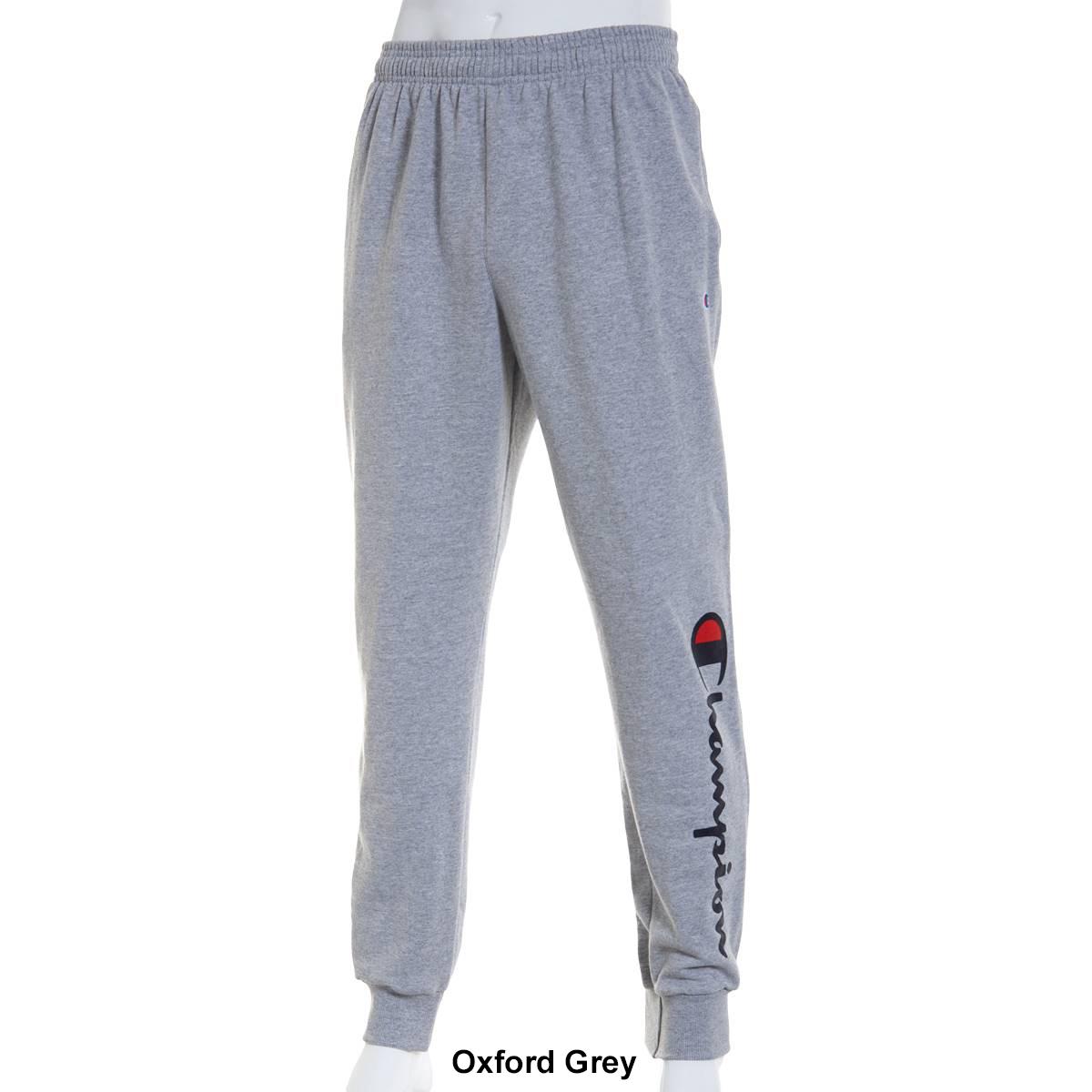 Add a comfortable classic style with these Mens Champion® Powerblend® logo fleece joggers. The joggers feature a drawstring elastic waist, two side seam pockets, and a script logo down the left leg.