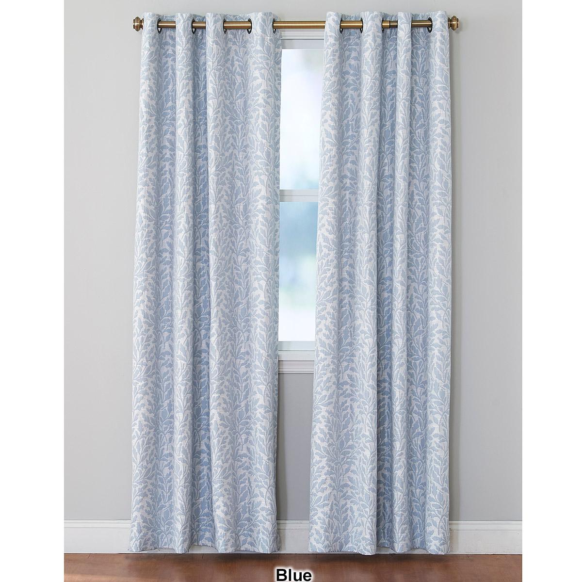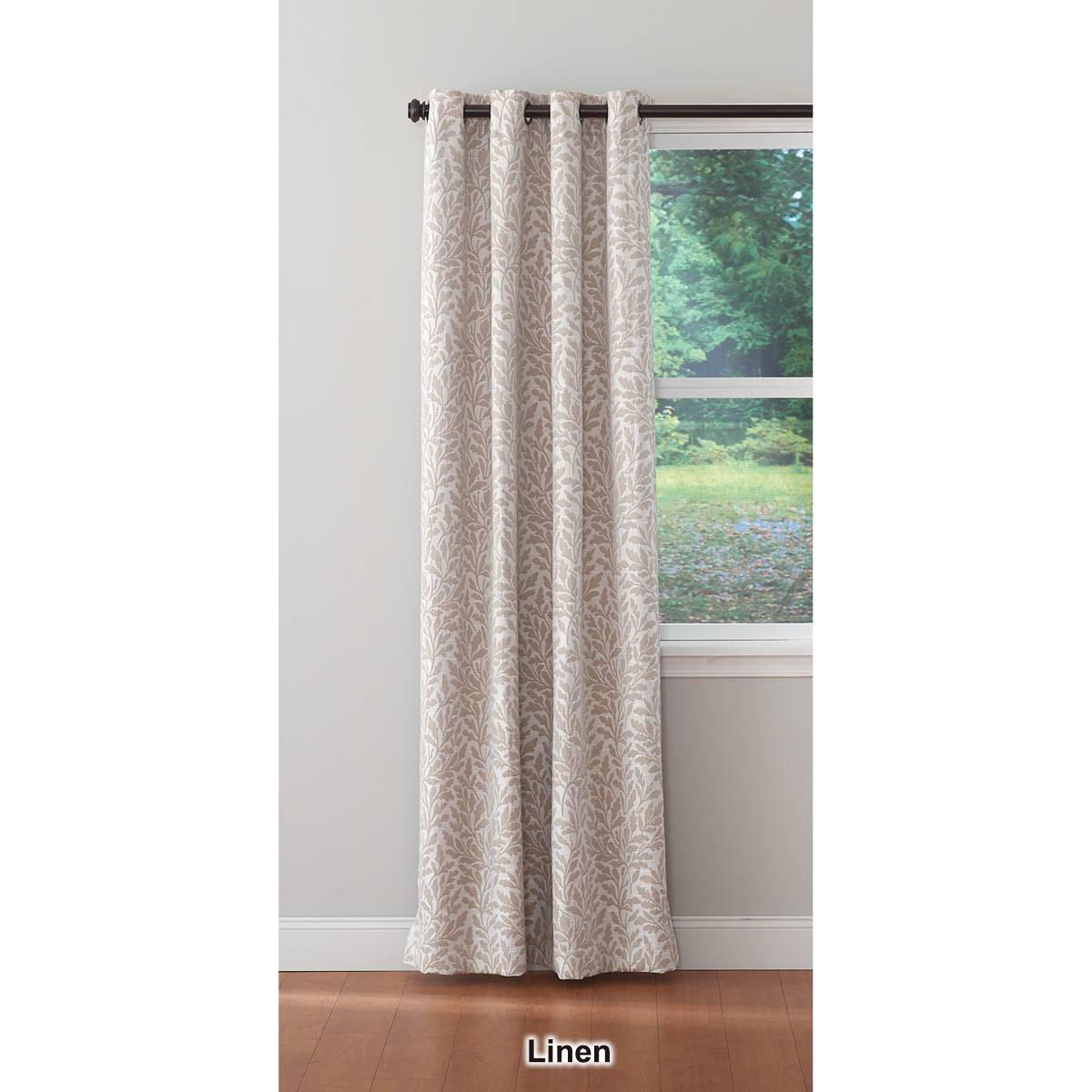 This brynn leaf jacquard design grommet panel with room darkening lining is the perfect addition to any room. Blocks out 99% of light for better a better sleep. Reduces noise. Energy saving.Shown: Two 84" panels.