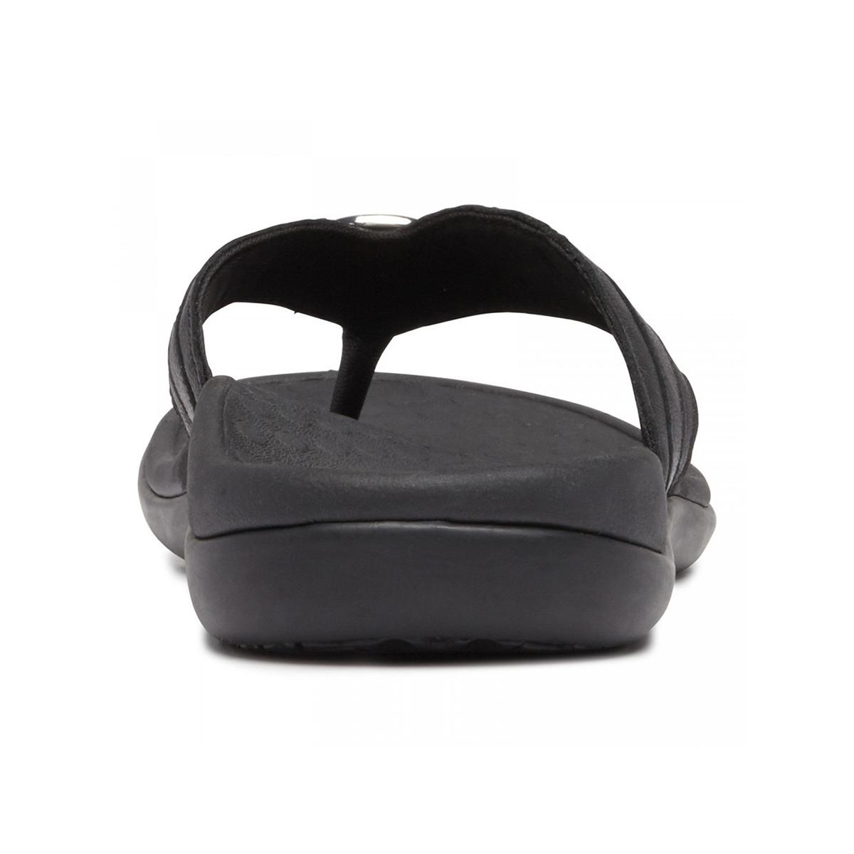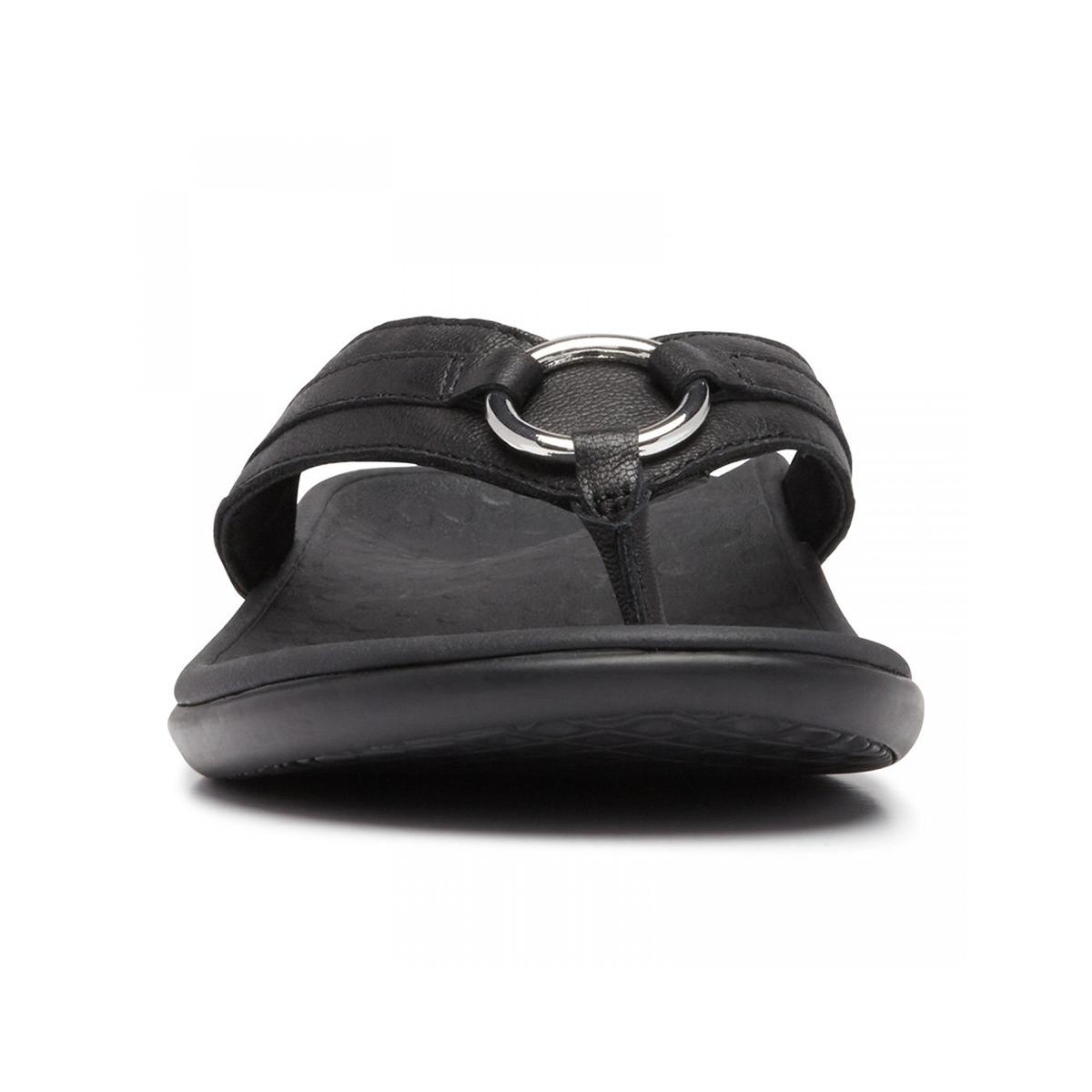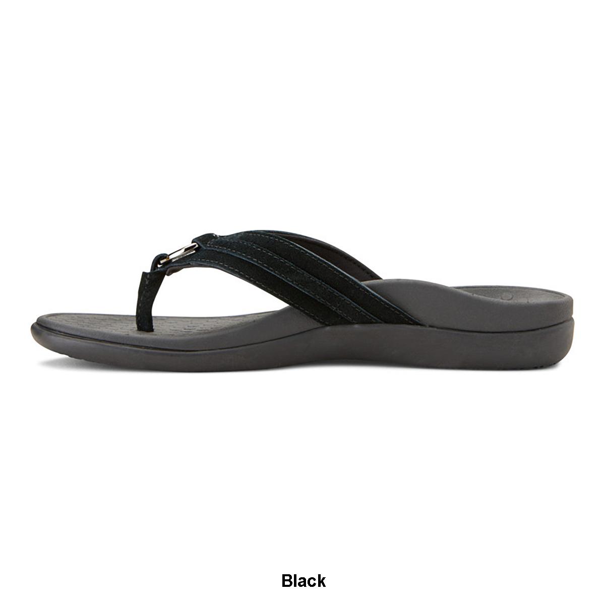 Description For the casually sleek lady, the Womens Vionic® Tide Aloe flat style flip flops feature a leather upper, a medium-density EVA midsole that reduces stress on the...