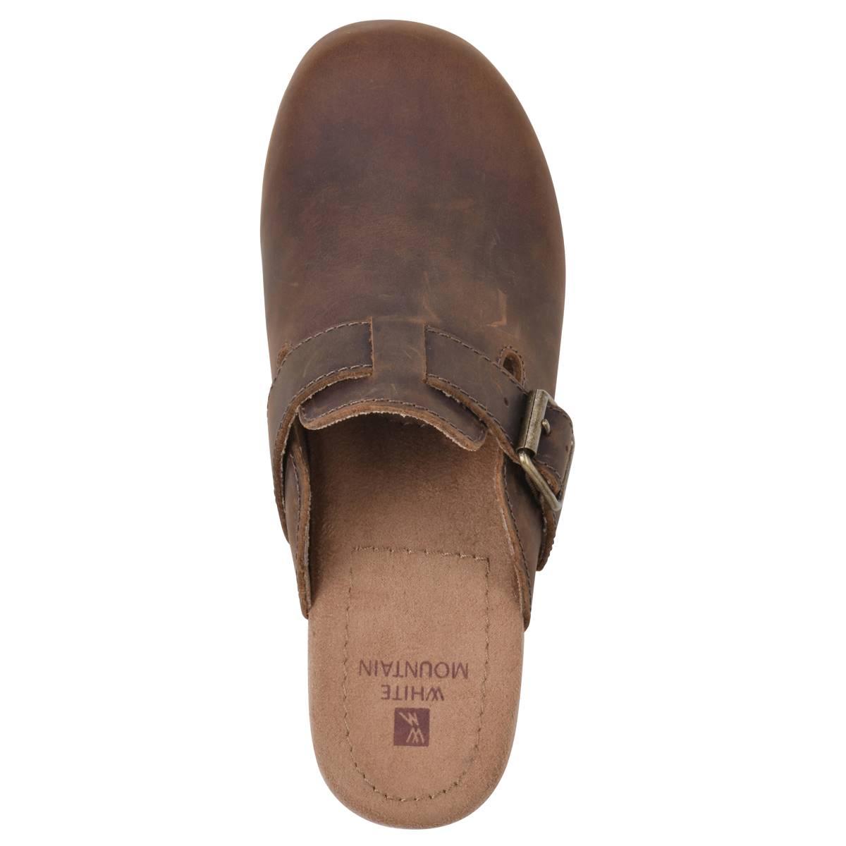 Description These Womens White Mountain Behold Leather Clogs will help stand apart. The shoes are equipped with an open back and belted buckle hardware strap. The contoured...