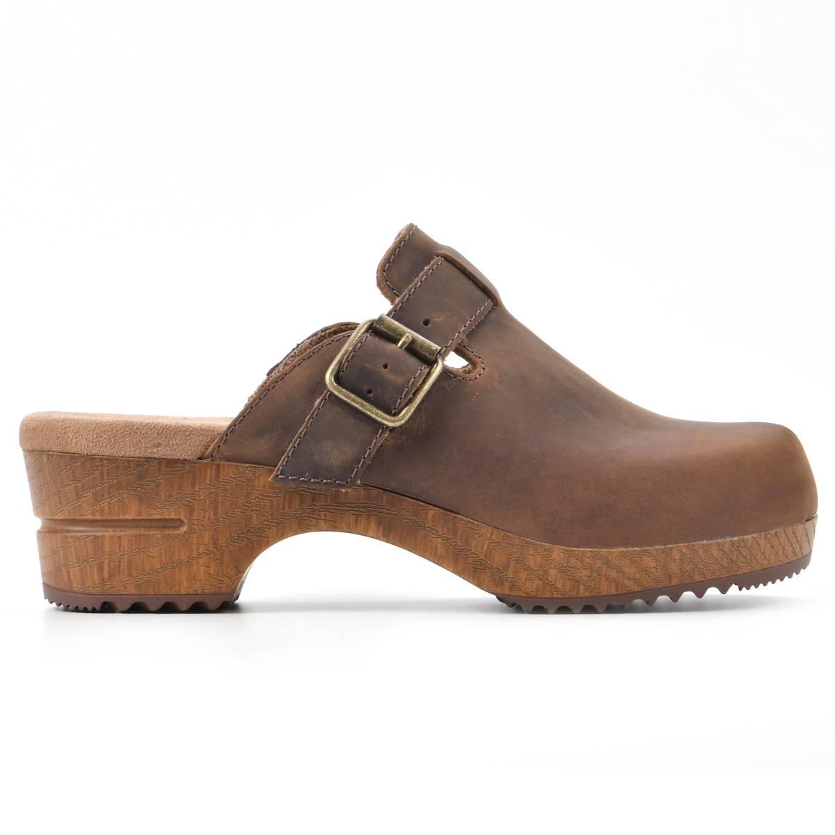 These Womens White Mountain Behold Leather Clogs will help stand apart. The shoes are equipped with an open back and belted buckle hardware strap. The contoured footbed and block heel give you all the support you need.