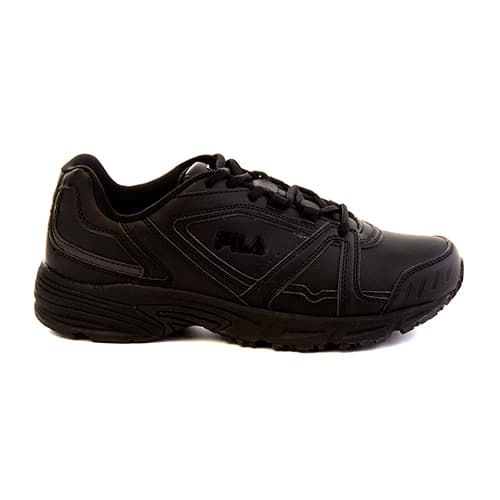 Mens Fila Talon 3 athletic sneakers feature faux leather upper, lace up closure, padded tongue/collar, light weight material, comfortable fabric lining, padded footbed, and a durable man made outsole that provides traction.