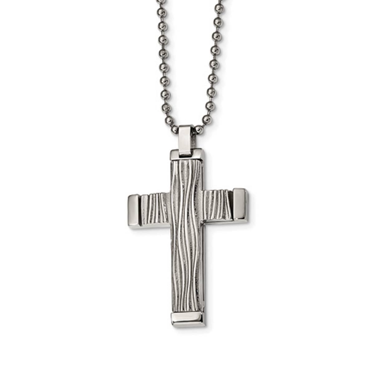 Mens Gentlemen’s Classics™ Polished Wave Design Cross Necklace