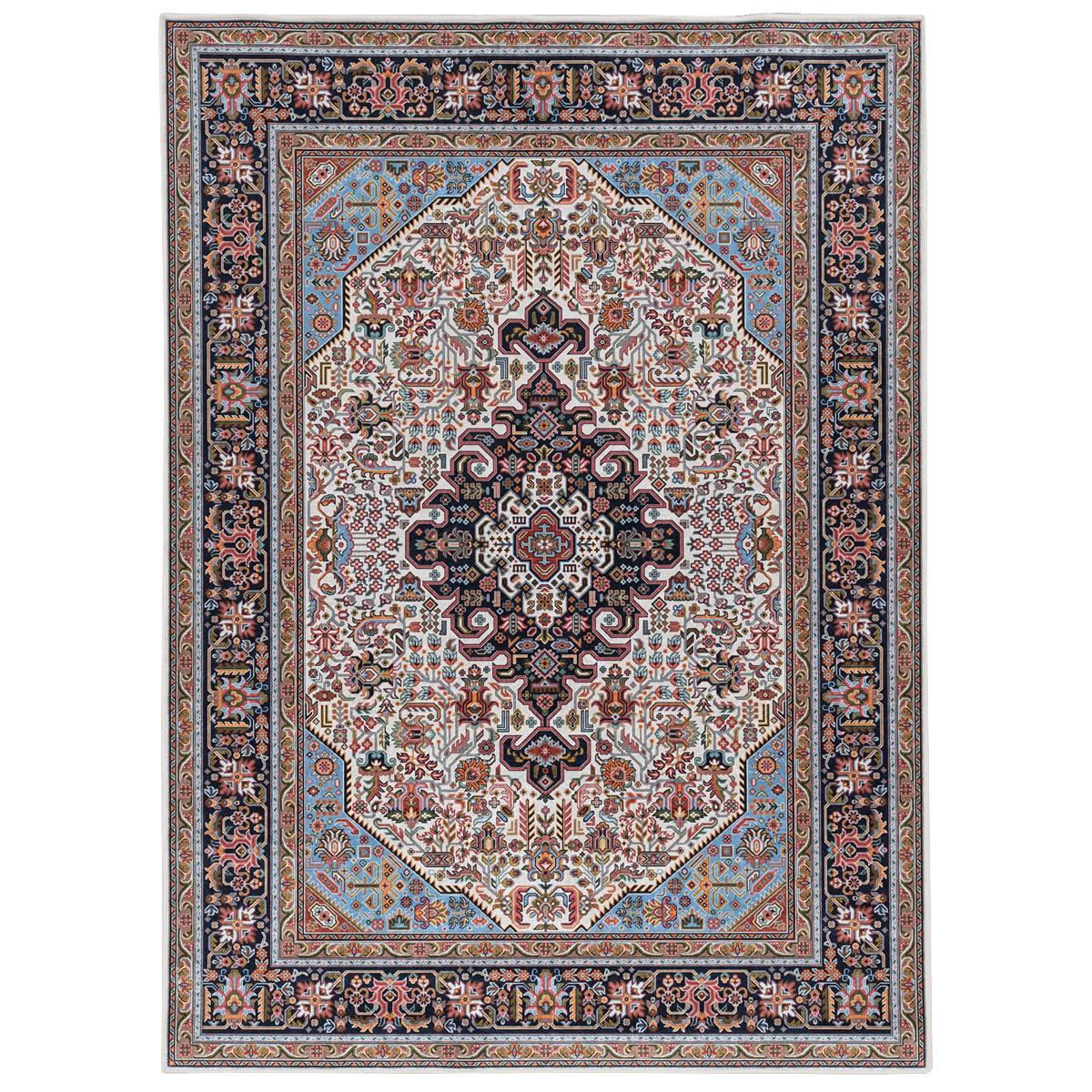 Linon Emerald Collection Ivory And Blue Area Rug - 5x7