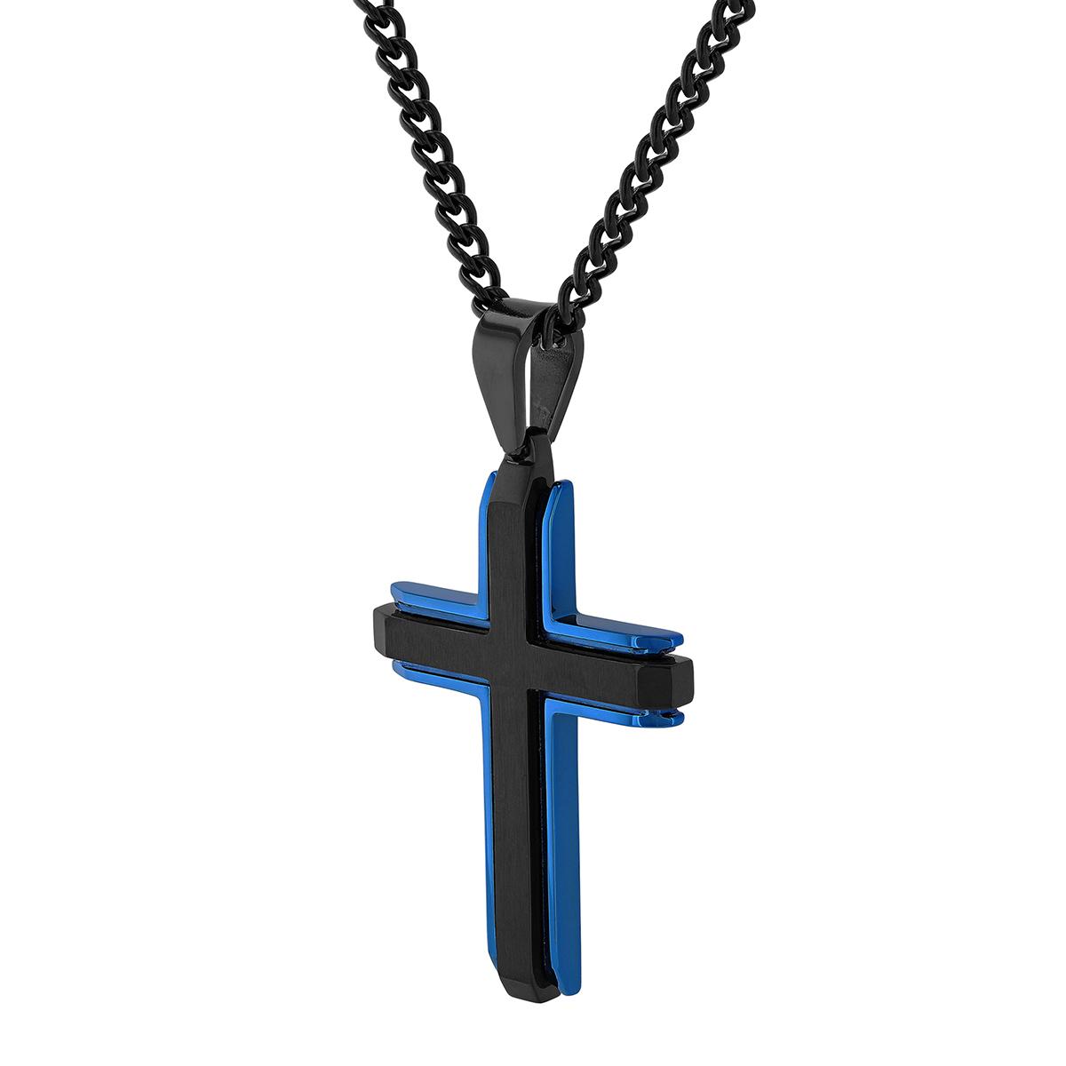 Description Daily inspiration comes with this Mens Gentlemen´s Classics™ two-tone stainless steel cross pendant necklace. Black and blue tones contrast to create a bold...