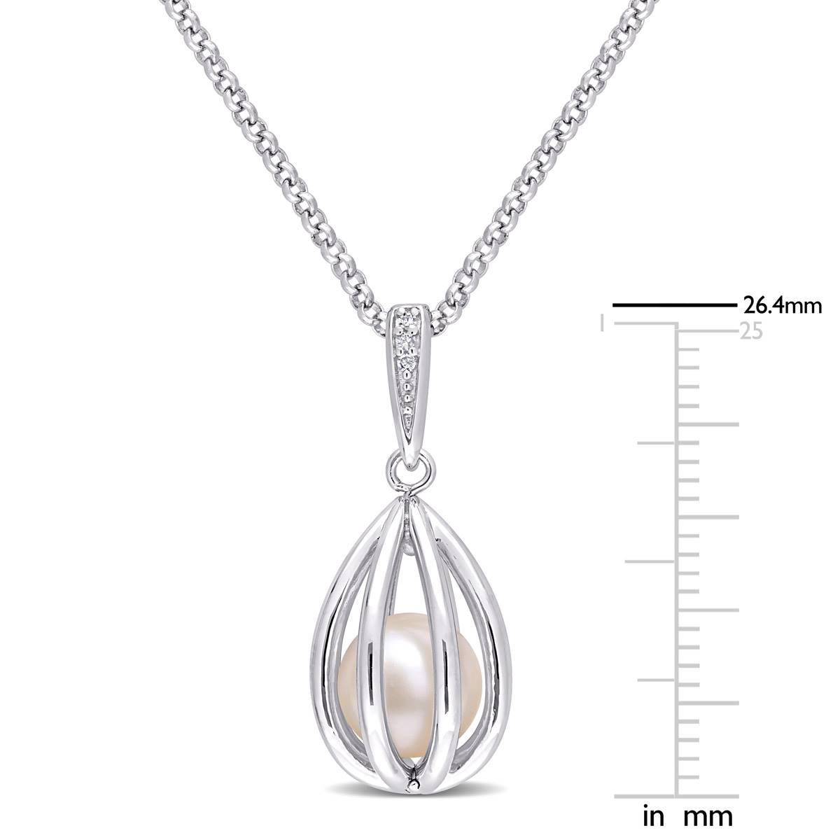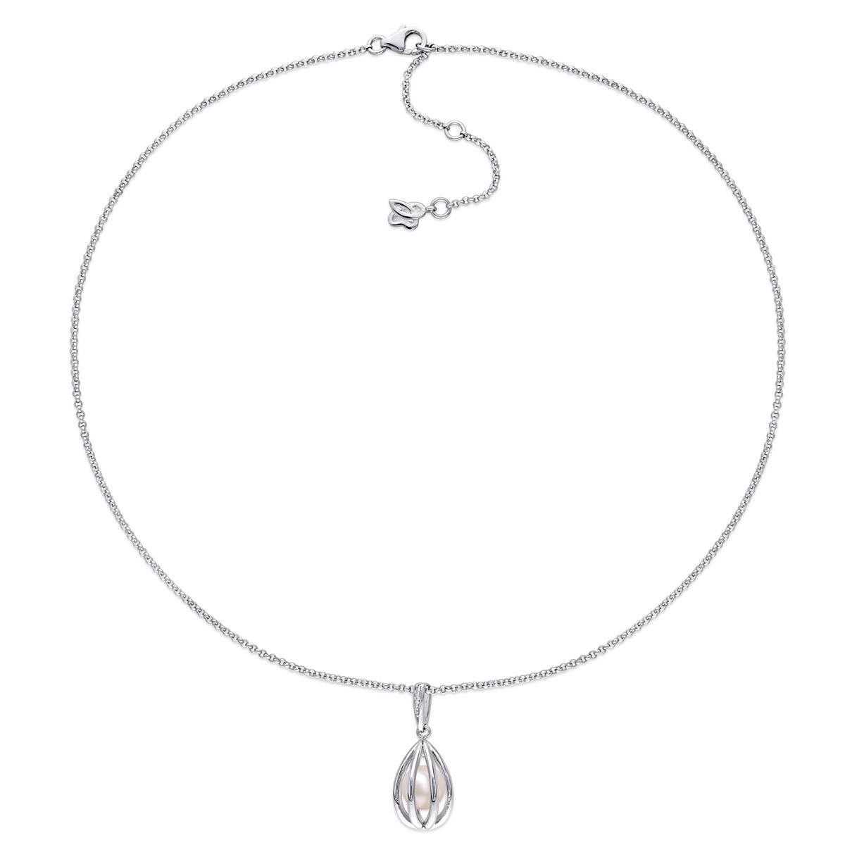This Gemstone Classics™ pearl and diamond accent necklace is crafted in radiant sterling silver and features a pendant with a freshwater cultured pearl studded in a cage design. Give yourself a glamorous look with this trendsetting cage necklace.