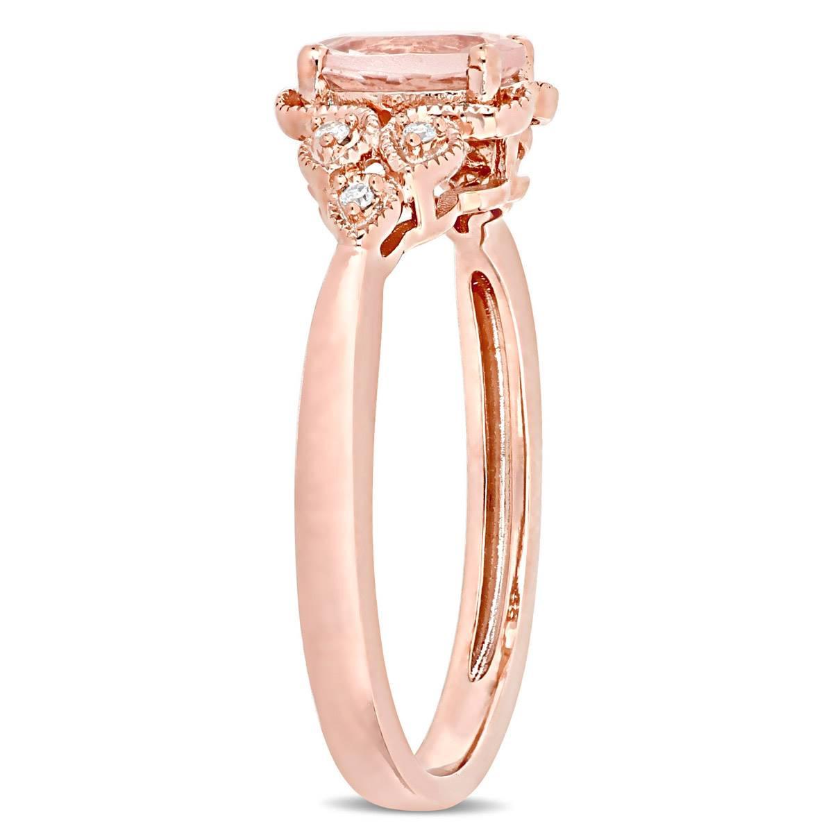 Evoke the envy of others with this stunning Gemstone Classics™ 10kt. Rose Gold Filigree Ring. Crafted to perfection in shiny rose gold, this ring features an oval-cut morganite gemstone as the center stone with six round-cut diamond accents adding grace to the ring.