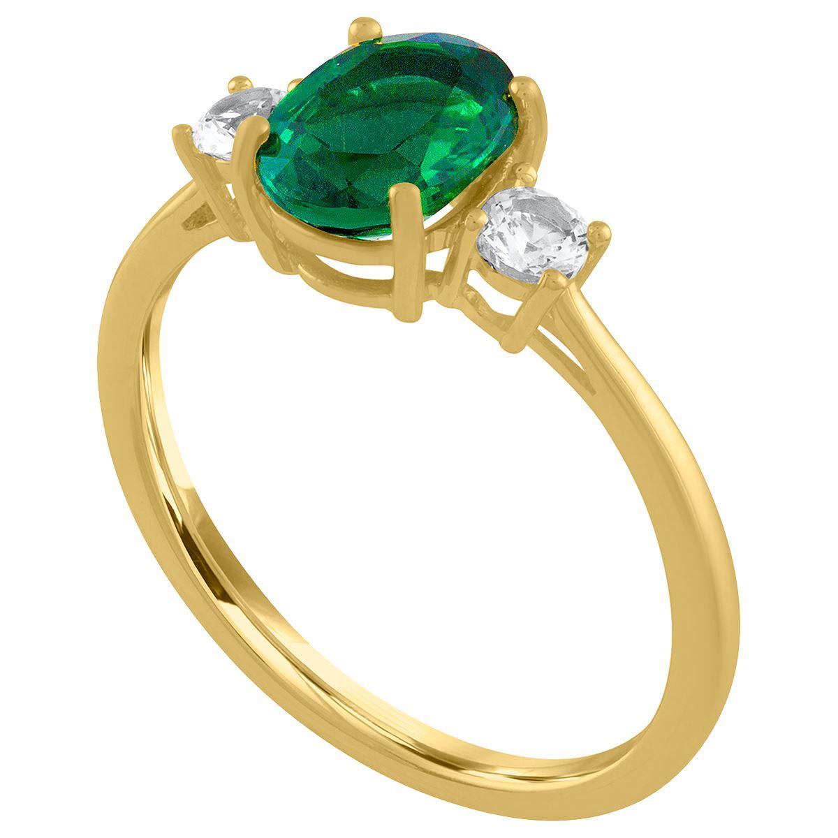 Set in 10kt. yellow gold, a stunning oval shaped created emerald gemstone is accented with created white sapphire stones in this beautiful Gemstone Classics™ ring.