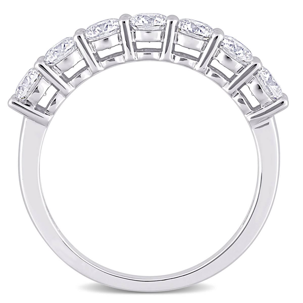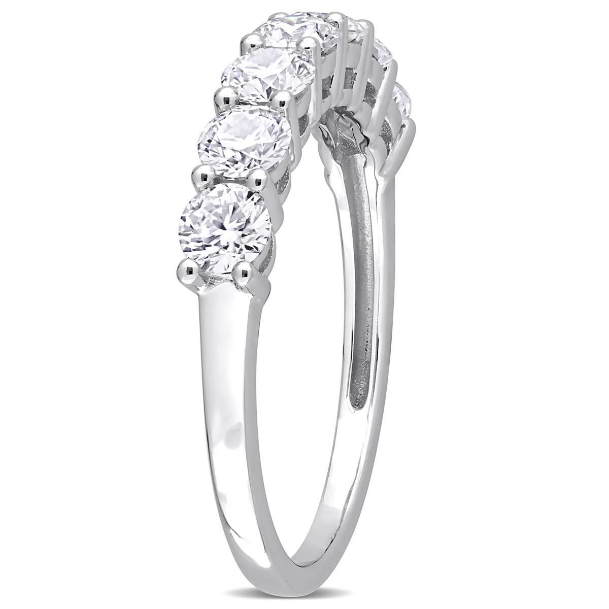 This classic Gemstone Classics™ anniversary band is crafted in sterling silver. This stunning eternity ring features seven round-cut, prong-set glowing created white moissanite gemstones. Show that special someone how much you love them with this gorgeous stackable wedding band and make her feel like a princess.