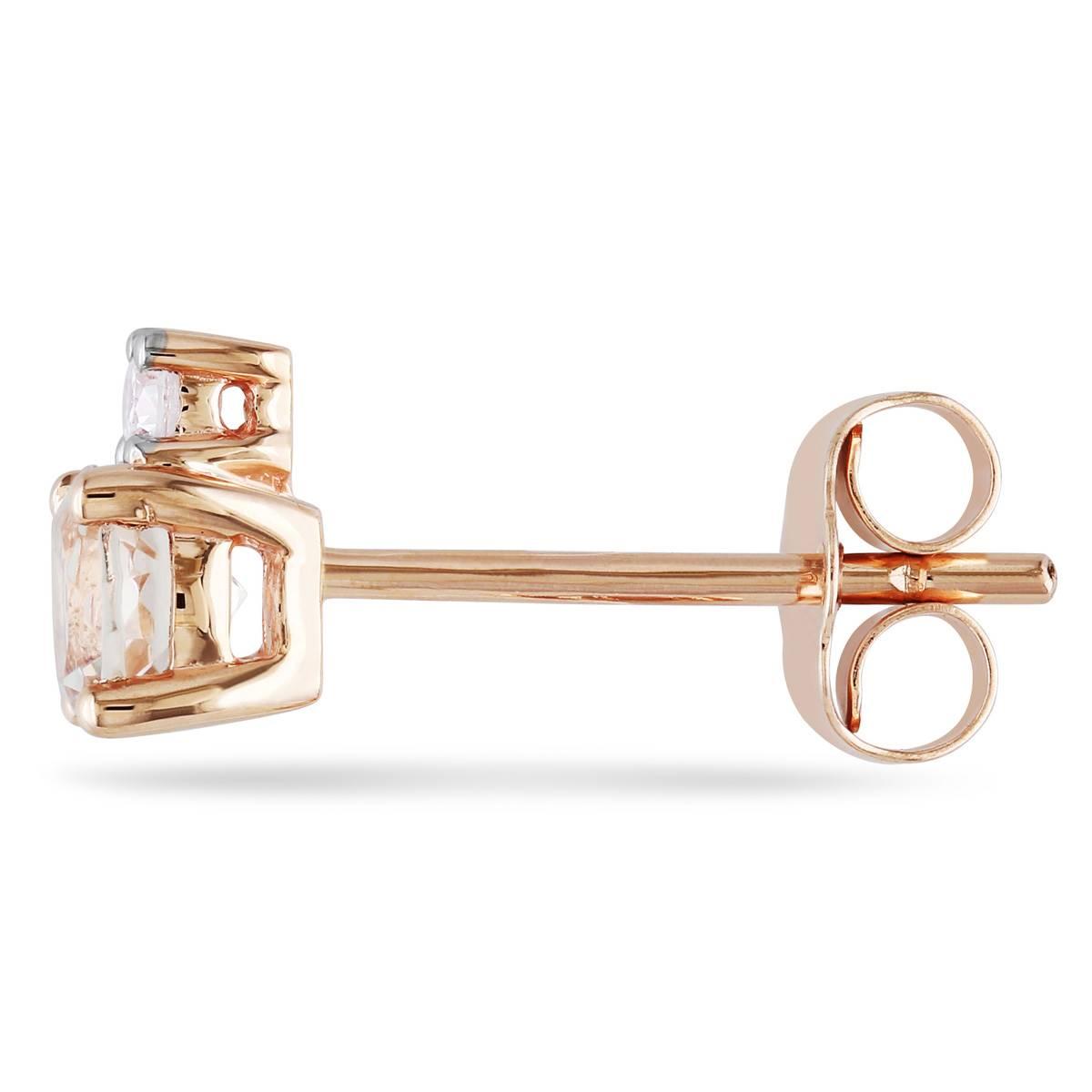 Wear these spectacular Gemstone Classics™ 10kt. Rose Gold Morganite Stud Earrings for any occasion. Crafted in lustrous pink gold, these earrings feature round-cut morganite gemstones with two round-cut, prong-set diamond accents. The earrings are secured with butterfly back closures.