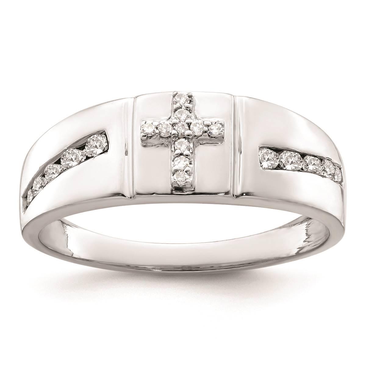 Description Display your faith in a tasteful way with this Mens Pure Fire 14kt. white gold Lab Grown Diamond cross ring. It is graced with 0.24ctw lab-grown diamonds to add a...