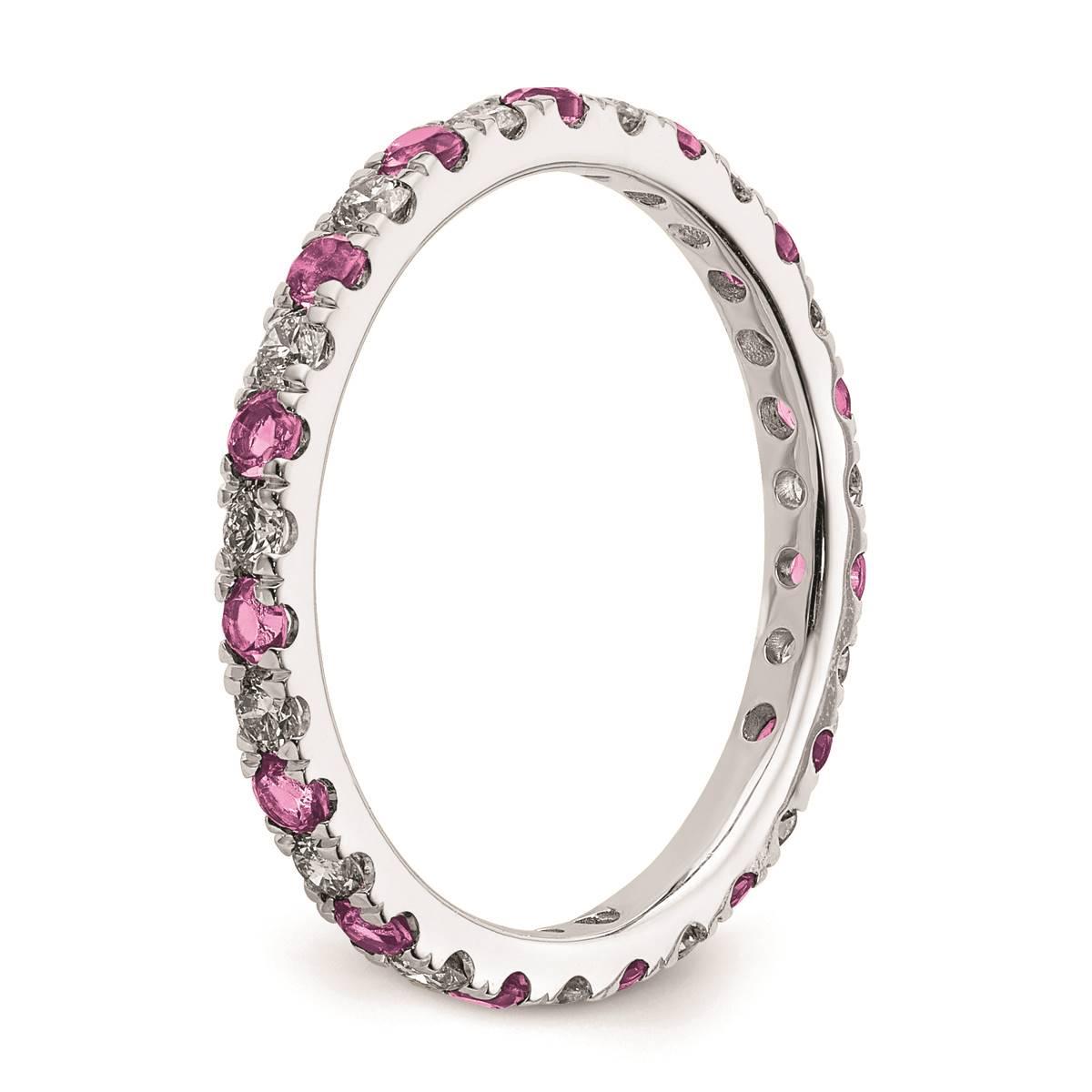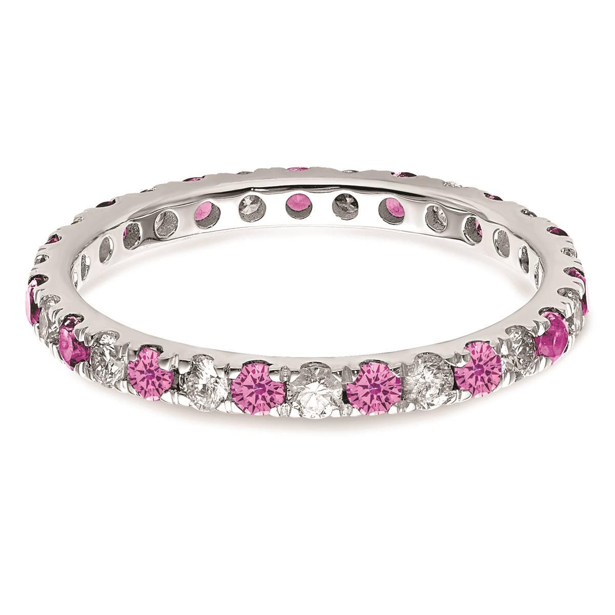 Description Add some colorful delight to your attire with this Pure Fire 14kt. White Gold Lab Created Pink Sapphire Band. Dazzling 0.65ctw. lab-created Pink Sapphire gemstones...