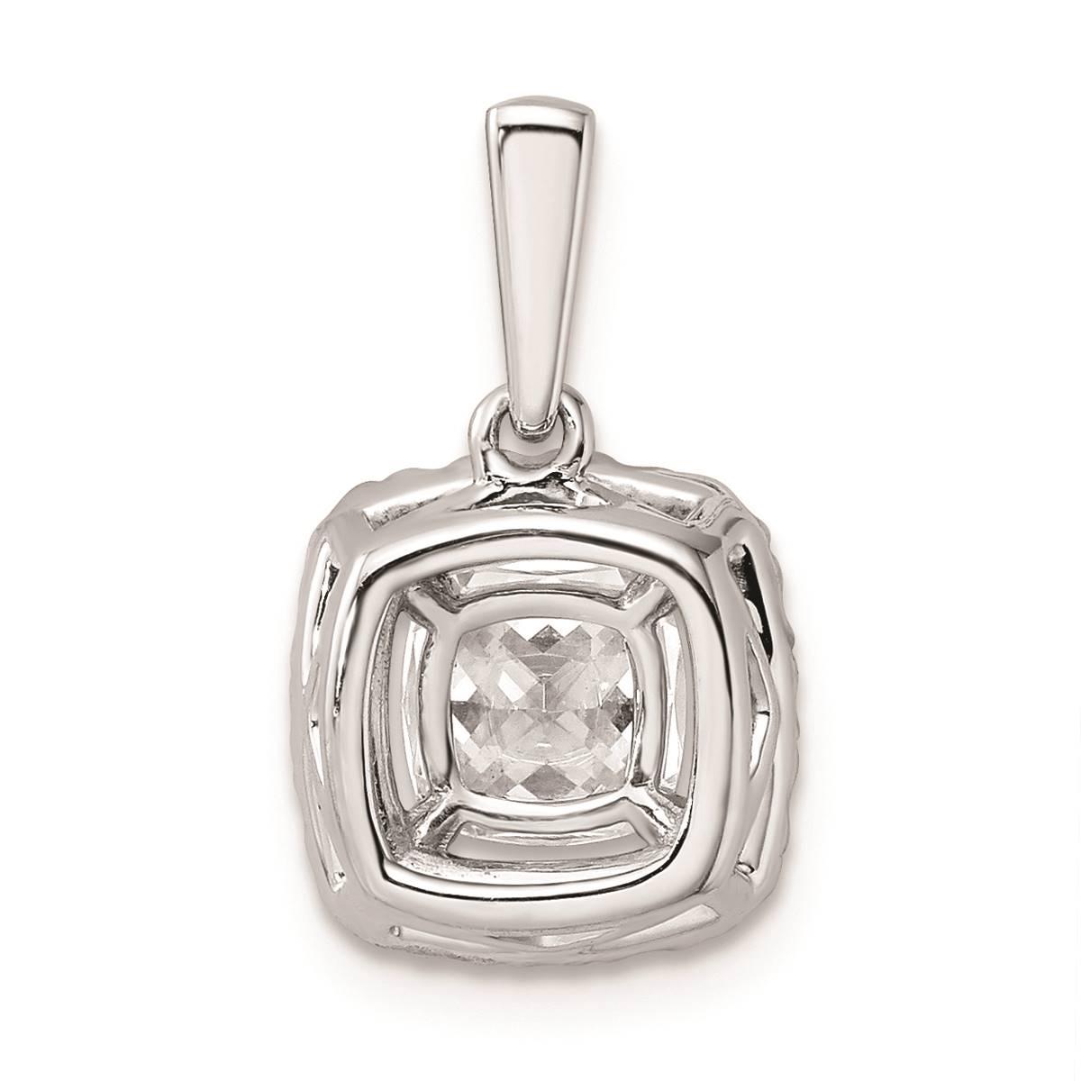 Give any outfit a touch of glamorous splendor with this beautiful Pure Fire 14kt. White Gold White Sapphire Halo Pendant. Fashioned from 14kt. white gold, this pendant displays a cushion-shaped 1.2 ctw, 6mm white sapphire gemstone haloed by sparkling 0.28 ctw round lab-grown diamonds for a delicate sparkle. Polished for perfection, this pendant is sure to light up her eyes with joy.