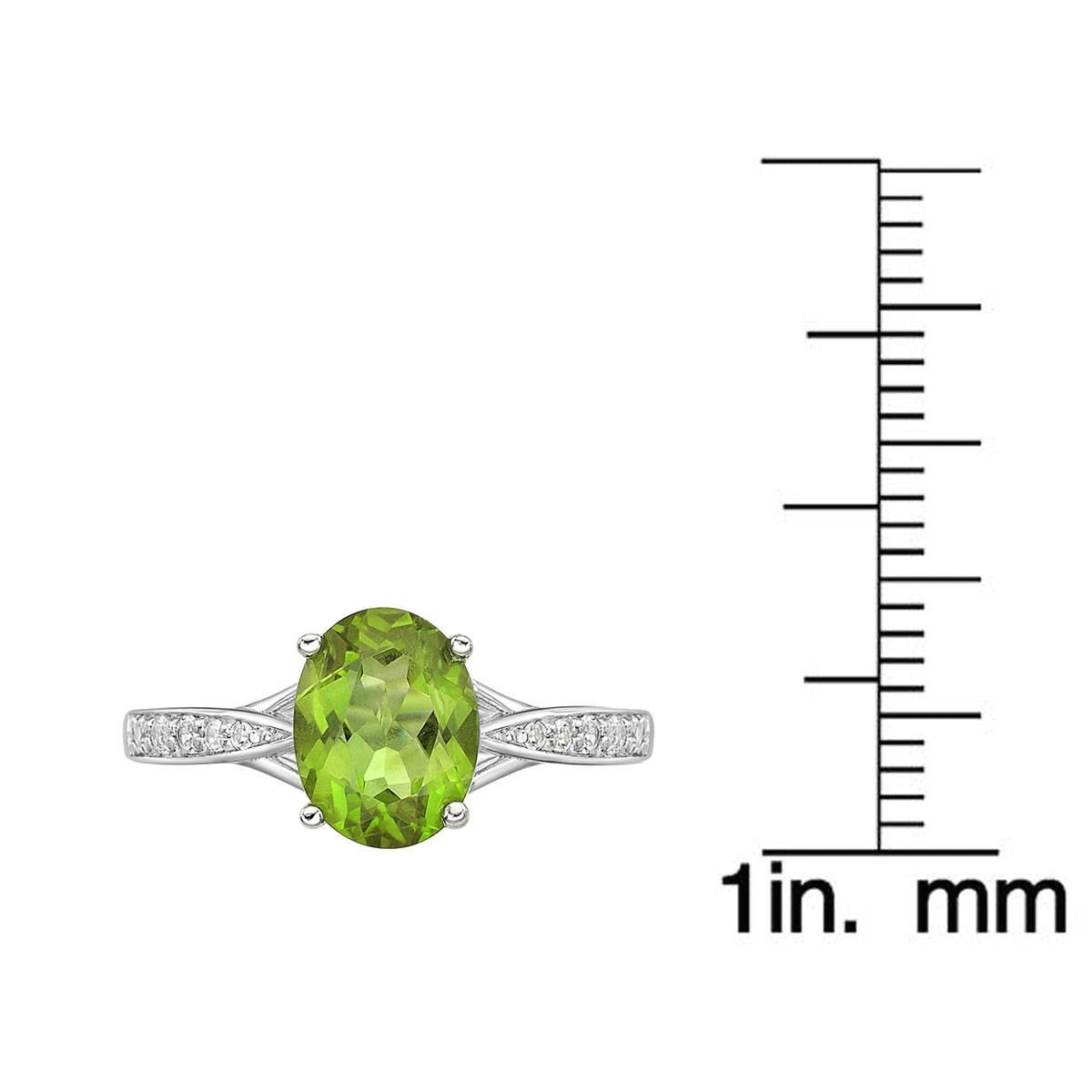 Description Crafted in sterling silver, this eye-catching ring features a dazzling 9x7mm oval-shaped genuine green peridot center stone. Glimmering white topaz accents decorate...