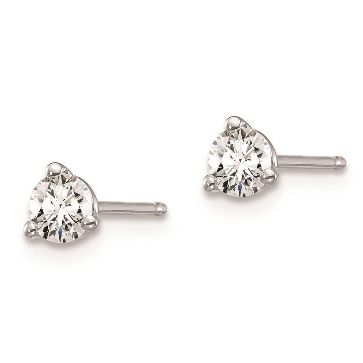 Simple, beautiful, and artistic, these Pure Fire 14kt. white gold certified 1/3ctw. diamond earrings will never go out of style. Each polished finish sleek earring exhibits a 3.5mm round shaped 3-prong set VS/SI clarity and D-E-F color grade certified lab-grown diamond. These 14kt. white gold earrings have a post and push-back clasps.