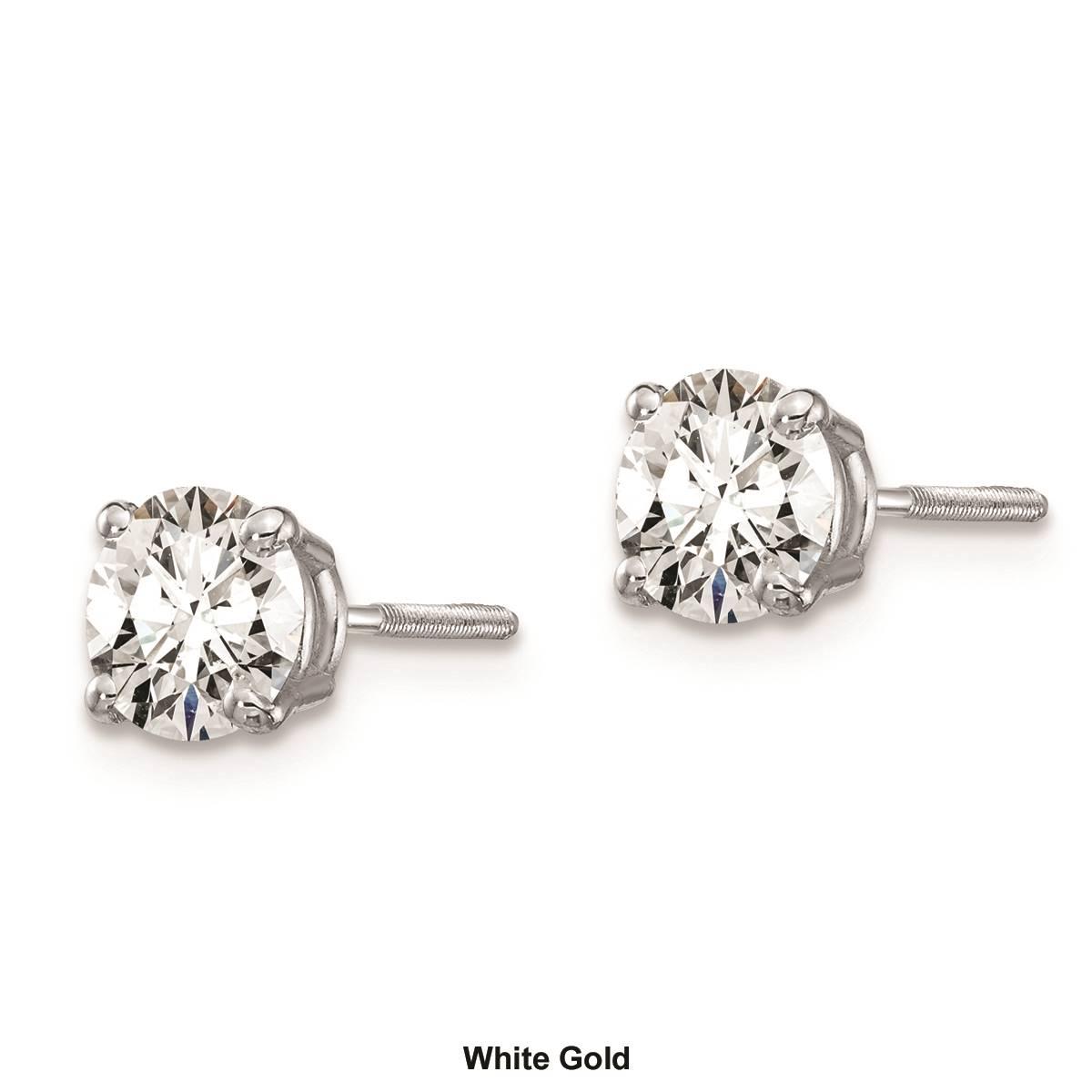The timeless beauty of this gorgeous pair of lab-grown diamond stud earrings will always be in style. Made from 14kt. gold these earrings feature a 4-prong set sparkling SI1/SI2 clarity and G-H-I color grade lab-grown diamonds of 5mm each totaling 1 ctw. Buffed for brilliant luster, these earrings are secured with post and screw-back closures.
