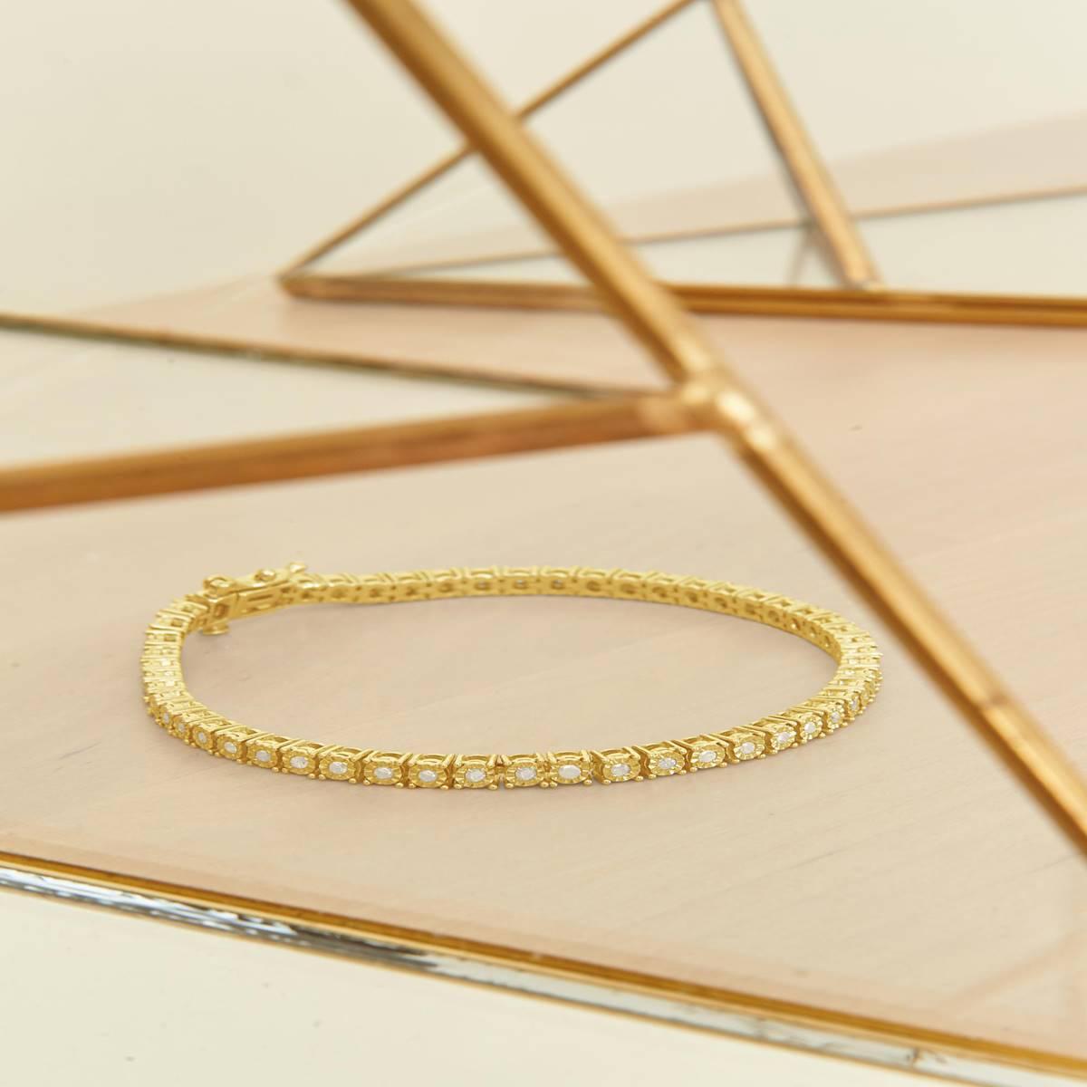 Haus of Brilliance Yellow Gold over Silver Diamond Bracelet