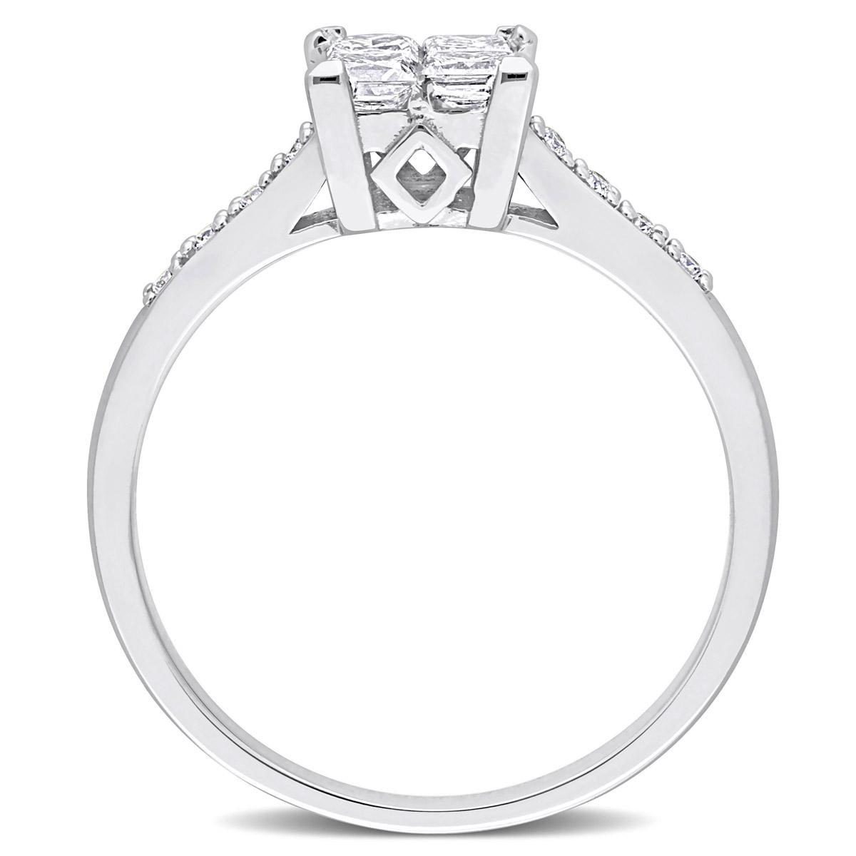 Make her day special by giving her this Diamond Classics™ 10kt. white gold 5/8ctw. diamond engagement ring. Features four princess-cut, invisible-set diamonds placed at the center in a square motif and eight round-cut, pave-set, diamonds that slide halfway down the band.
