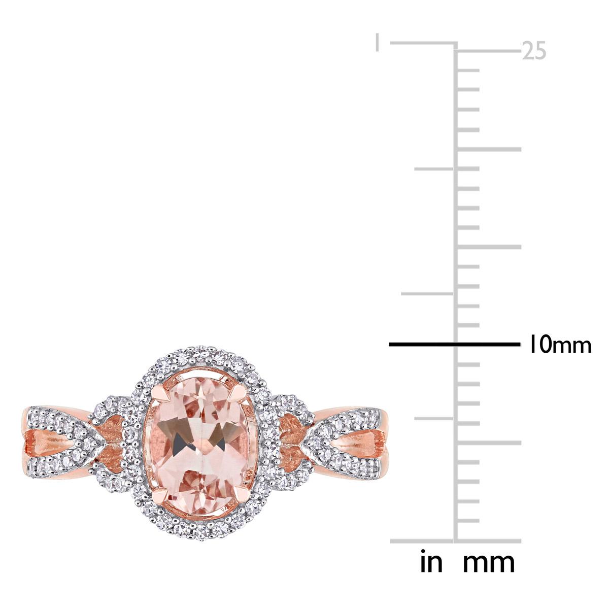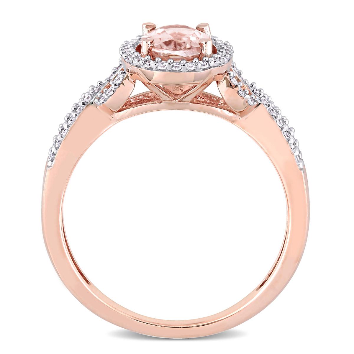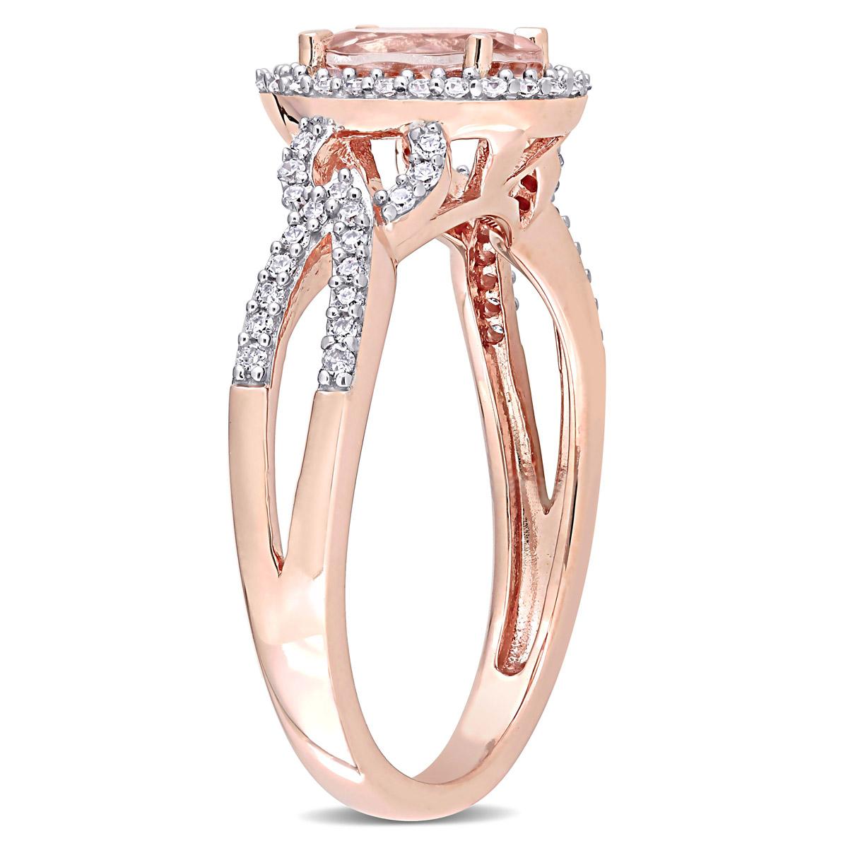 Description This modern and sophisticated Gemstone Classics™ morganite and diamond crossover ring is crafted in lustrous 14kt. rose gold and features an oval-cut, prong-set...