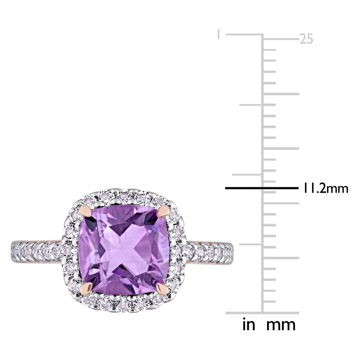 Description This charming Gemstone Classics™ halo cocktail ring is crafted in 10kt. rose gold and features a cushion-cut amethyst center stone surrounded by a halo of round-cut...
