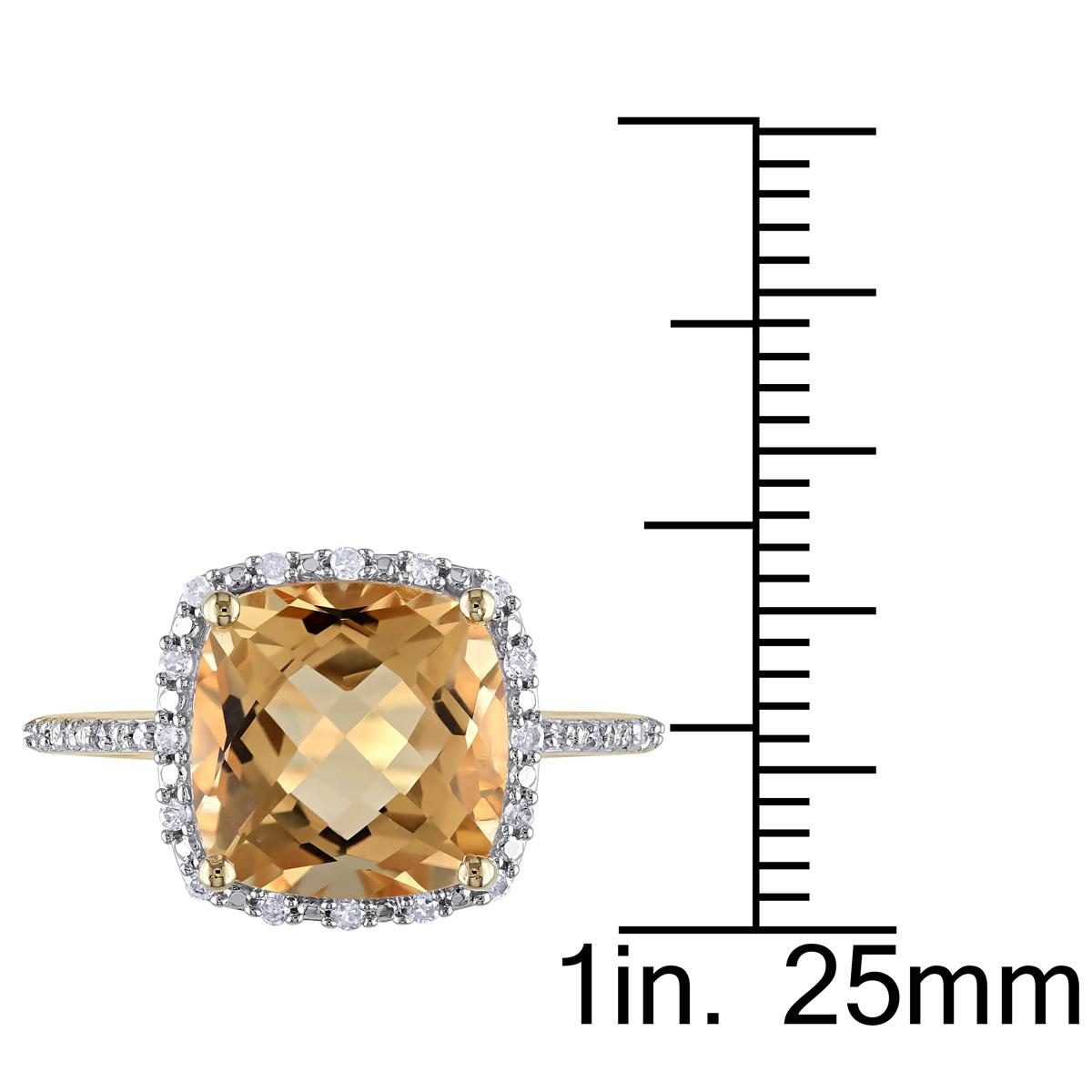 This impressive Gemstone Classics™ ring features a cushion-cut citrine center stone surrounded by round white diamond side stones. This fantastic ring is crafted of gleaming 10kt. yellow gold.