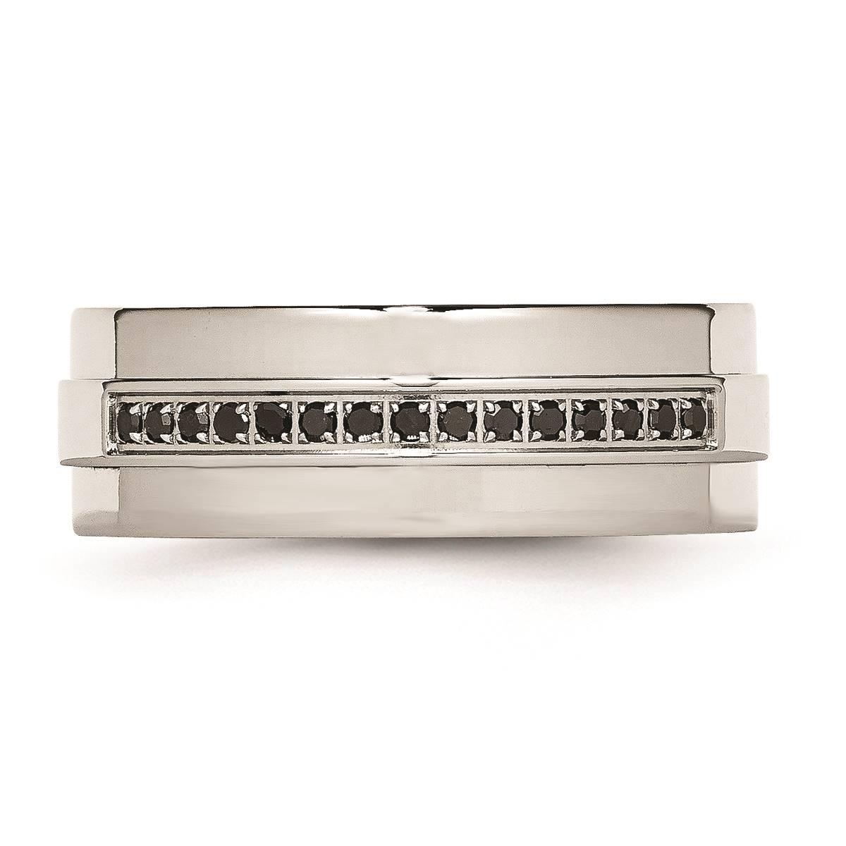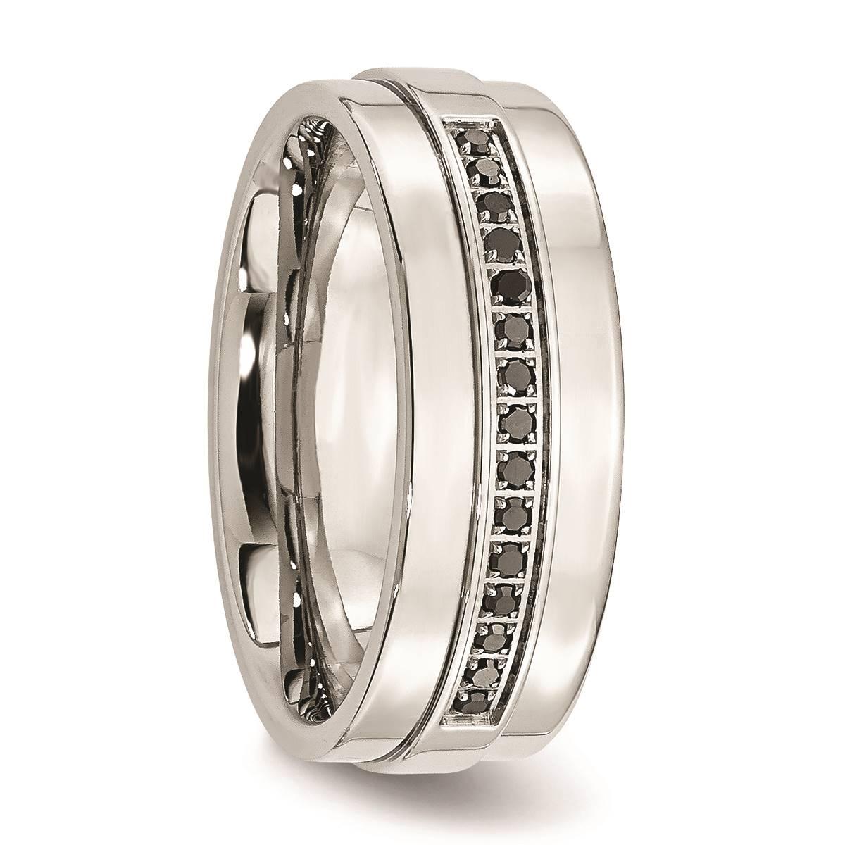 This Mens Fine Jewelry Collections Gentlemen´s Classics™ stainless steel wedding band is a wonderful way to say I do! This symbol of eternal love is engravable with 0.15ctw black diamonds in the center and a high polished finish that he will treasure for a lifetime.