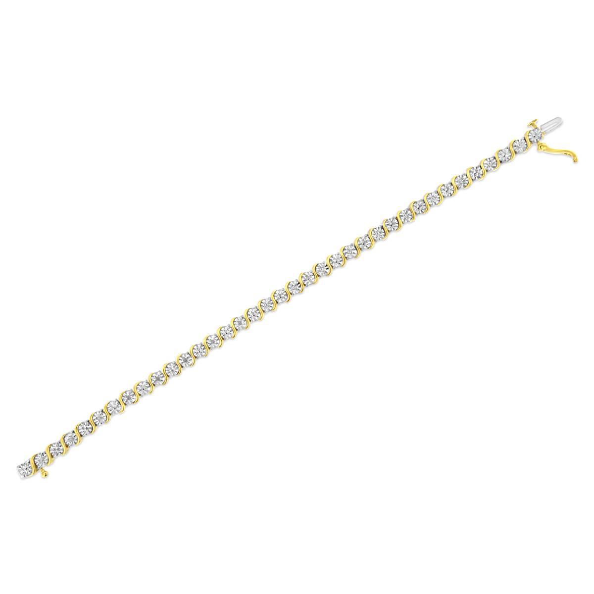 Adorn yourself with this Haus of Brilliance 14kt. yellow gold plated tennis bracelet at any event for a touch of classic dazzle and elegance. This enticing bracelet features shimmering, natural diamonds - masterfully set to enhance size and sparkle - alternating with beaded links all amongst polished "S" shaped links. This is the perfect bracelet for both gifting and self-purchasing!