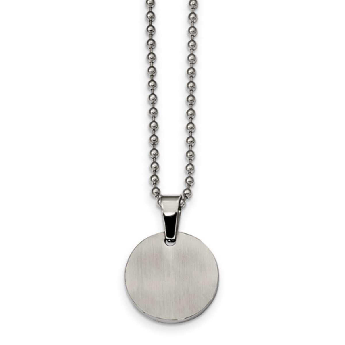 This Mens Gentlemen´s Classics™ reversible dog tag necklace is 2mm thick and can be engraved. Its round shape is high polished and hangs from a long ball chain and is secured with a fancy lobster clasp for closure.