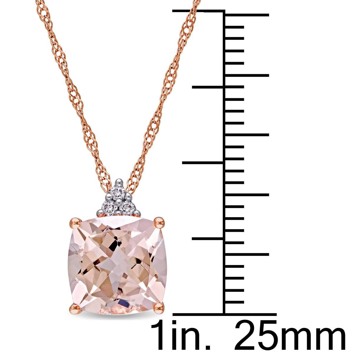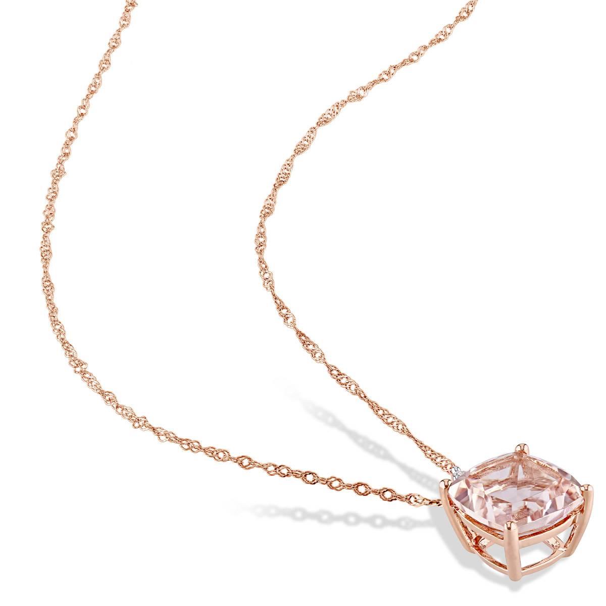Bring home this enchanting Gemstone Classics™ 14kt. Rose Gold Cushion-Cut Pendant and look amazing wherever you go. It features a cushion-cut, prong-set glittering morganite gemstone enhanced by three round-cut, prong-set shimmering diamonds resting above it.