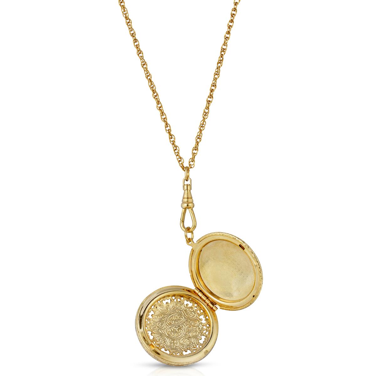 Take a step back in time with this 1928 classic 14kt. gold dipped carnelian cameo round locket necklace. The gold-tone thirty-inch necklace is timeless and an affordable gift for her.