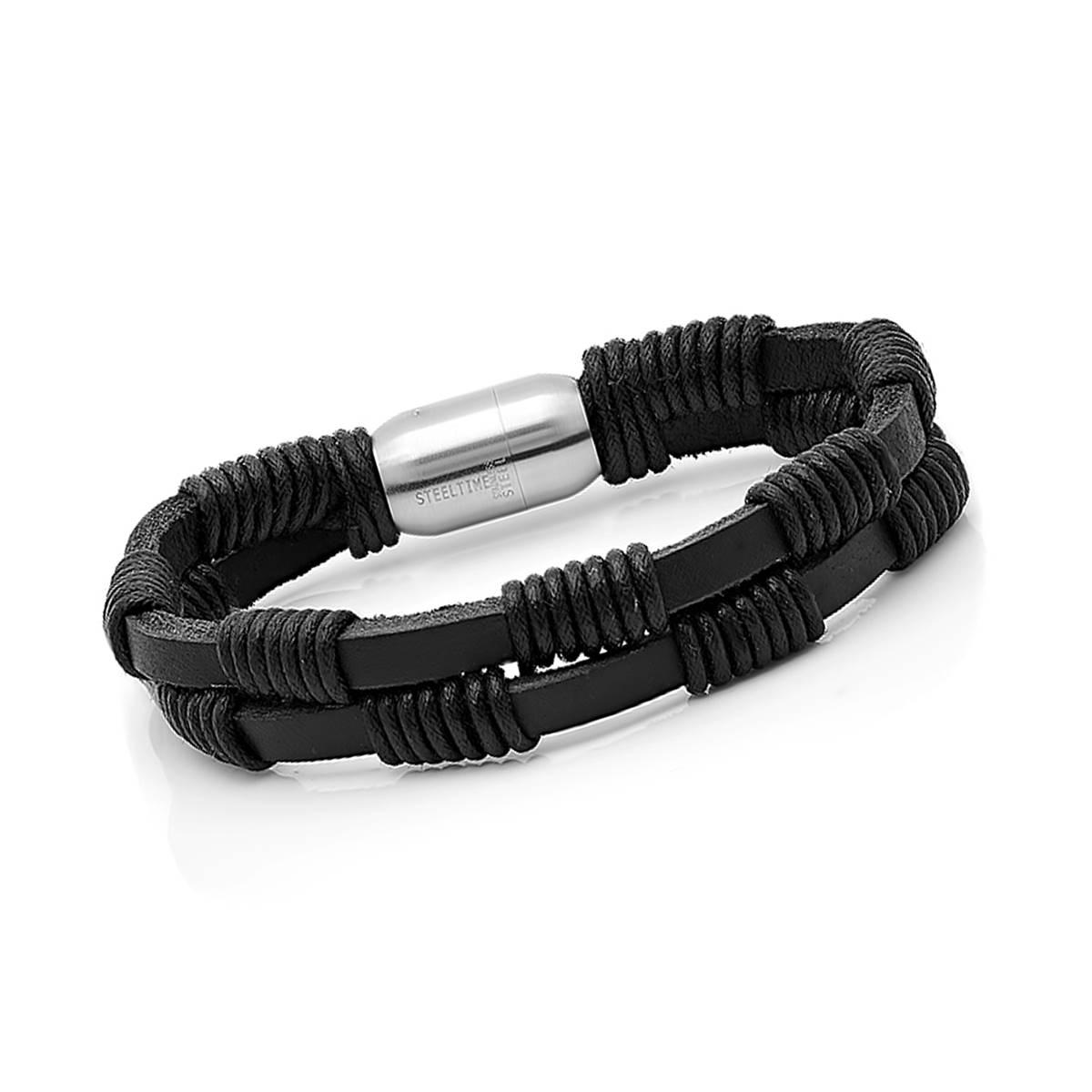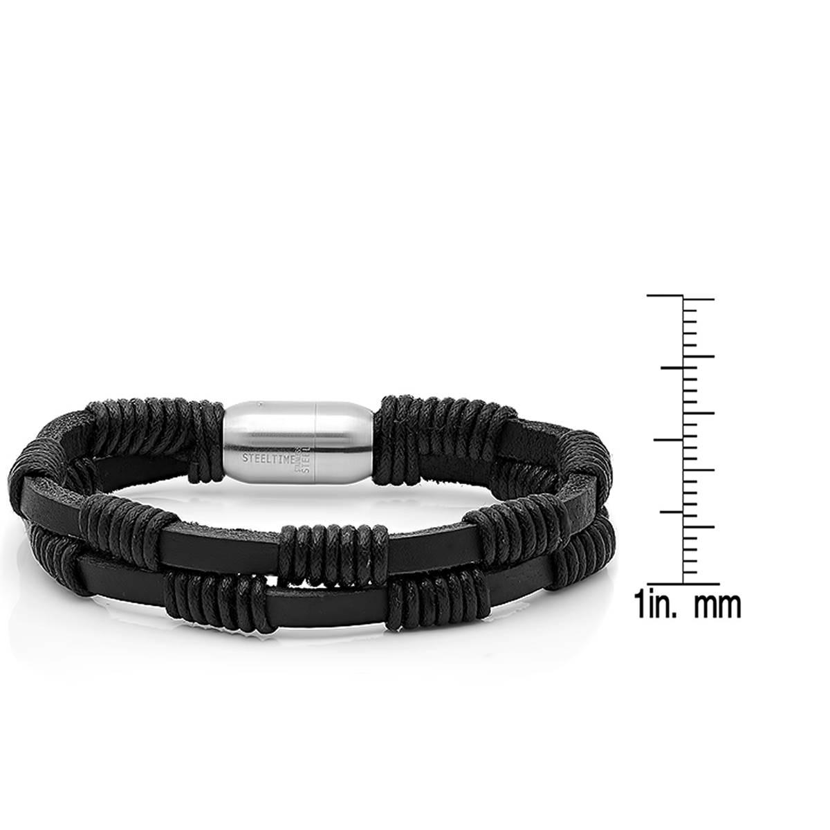 Description This Mens leather braided bracelet in black is a great way to elevate your personal style. Its design is finished with a stainless steel clasp closure. Length: 8...