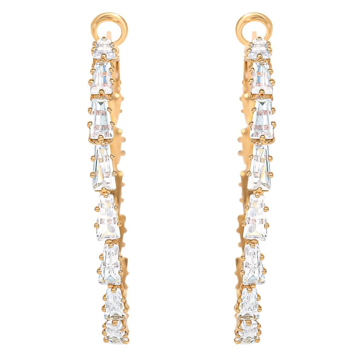 Add some sparkle to your day with the Jessica Simpson imitation yellow gold plated baguette hoop earrings.