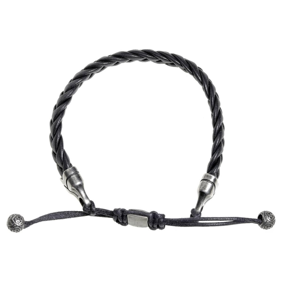 Top off any look with the easygoing style of this tasteful Mens Lynx stainless steel and braided black leather bracelet. Rugged yet refined, this fashion-forward choice features black braided leather and secures with an adjustable drawstring clasp.