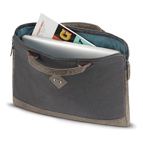 Description This Solo Pilot slim briefcase is a stylish piece. It features a fully padded 15.6 inch laptop compartment, padded carry handles, and backstrap that easily slides...