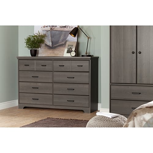 Description This South Shore Versa 8 drawer double dresser has an elegant country style with charm and a rich, distinctive finish! Ideal to meet your storage needs, it will make...