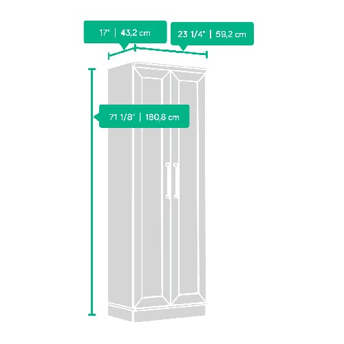 Description Sauder HomePlus storage cabinet features a Dakota Oak finish. Dimensions: 71"H x 23"W x 17"D. Please measure to make sure it will fit your space. Limited Manufacturer...