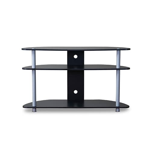 The Baxton Studio orbit tv stand provides the perfect open design with a great way to not only position your television, but to display plenty of decorative accessories. Cables can easily be managed with pre-drilled holes at shelf level for videogame consoles and other electronic players. This stand is firmly futuristic with its pipe tube and curved edge shelving. Made with pipe tube, particle board, and PU Veneer. Wipe with a dry cloth. Dimensions: 23.2”H x 39.2”W x 13.6”D.