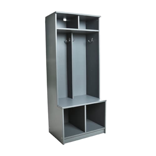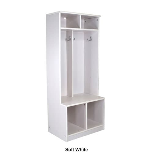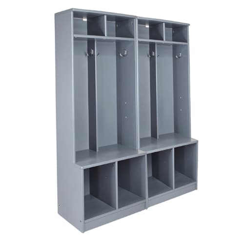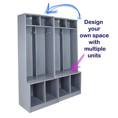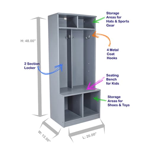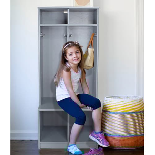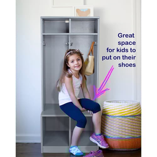 This Little Partners™ 2 Cubby Wooden Locker offers cubbies, shelves, and 8 industrial grade hardware hooks, providing all the nooks and crannies needed to help kids neatly store shoes, jackets, backpacks, and supplies and minimize clutter around the house. A small ledge provides a space to sit while putting on or removing shoes. You can push more than one together for double the storage, and assign one section to each child to nurture organization and responsibility for the whole family.
