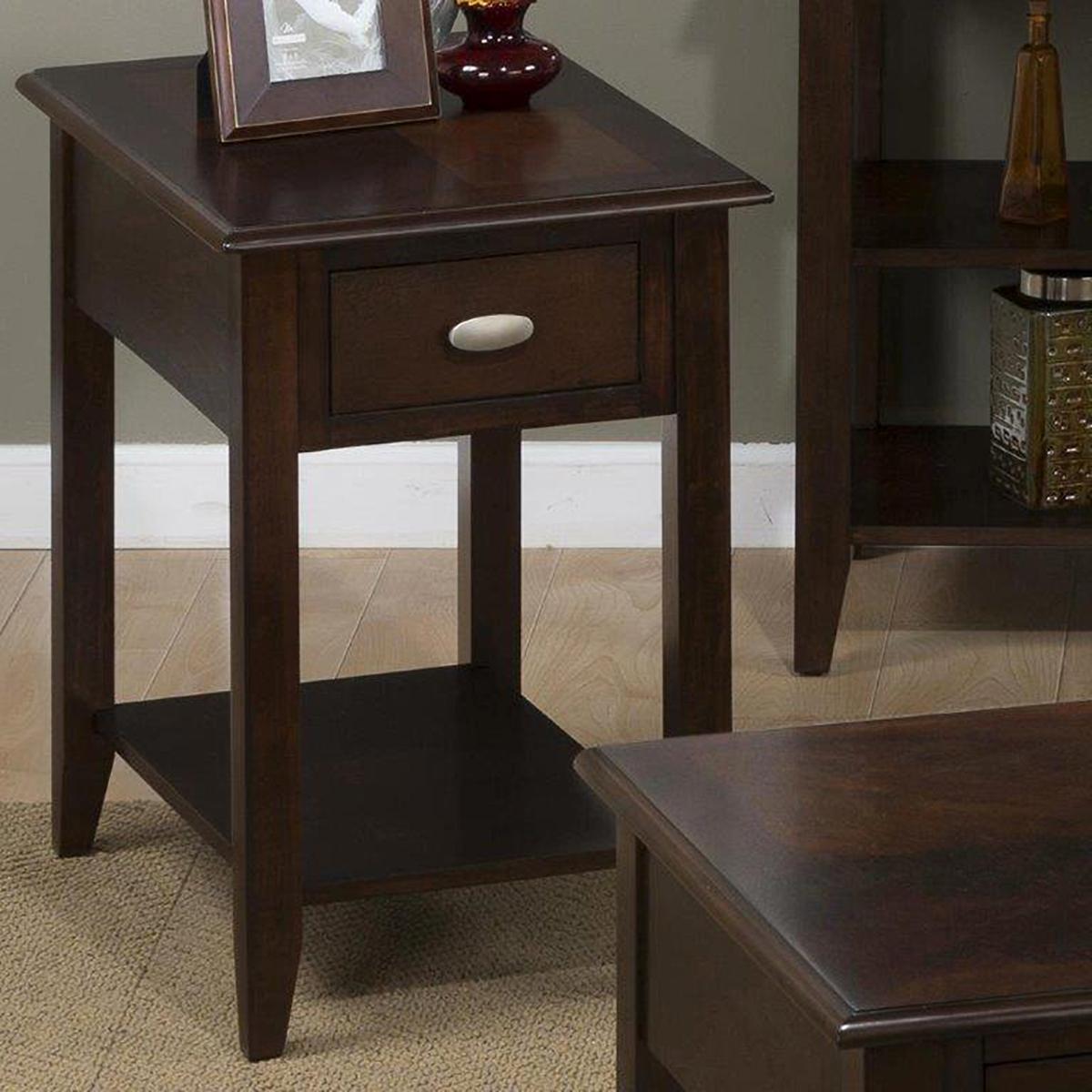 The Merlot occasional table group features a cocktail table with pull through drawers and brushed nickel hardware. The Merlot collection is designed to create a fashionable style with a relaxed ambiance. This group features a warm brown merlot finish over select birch veneers.This item is deliverable only by Boscov´s Home Delivery Service for online orders within a 25-40 miles radius of any Boscov´s store (based on your zip code). For more information, go to Shipping.Please measure to make sure it will fit in your space.