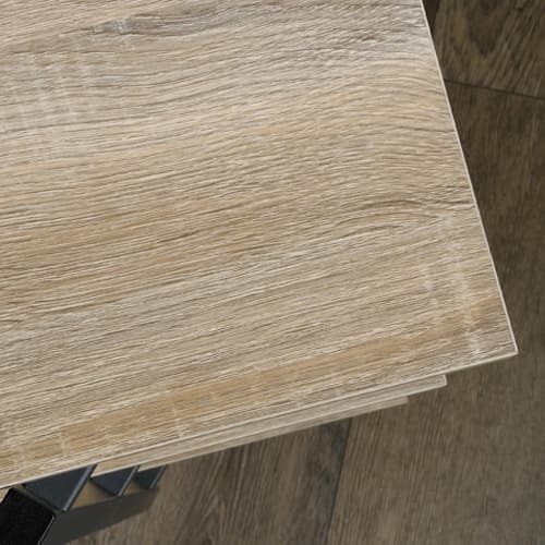 Sauder North Avenue console accommodates up to a 42" TV weighing 50 pounds or less. Sturdy, 1" thick top and shelves. Finished on all sides for versatile placement. Powder coated metal frame. Simple, no tools required assembly. Charter Oak finish.